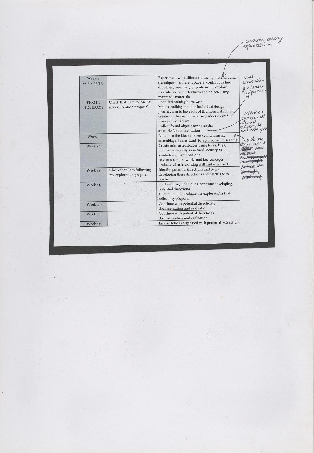 Her plan provides clear explanation of how her individual studio process will be structured and is referenced throughout the process by the additions and retractions outlined on the plan.