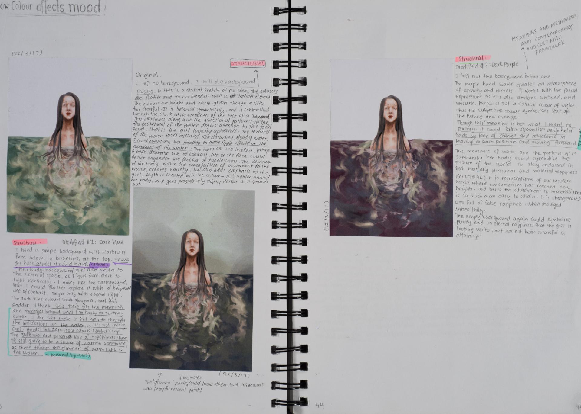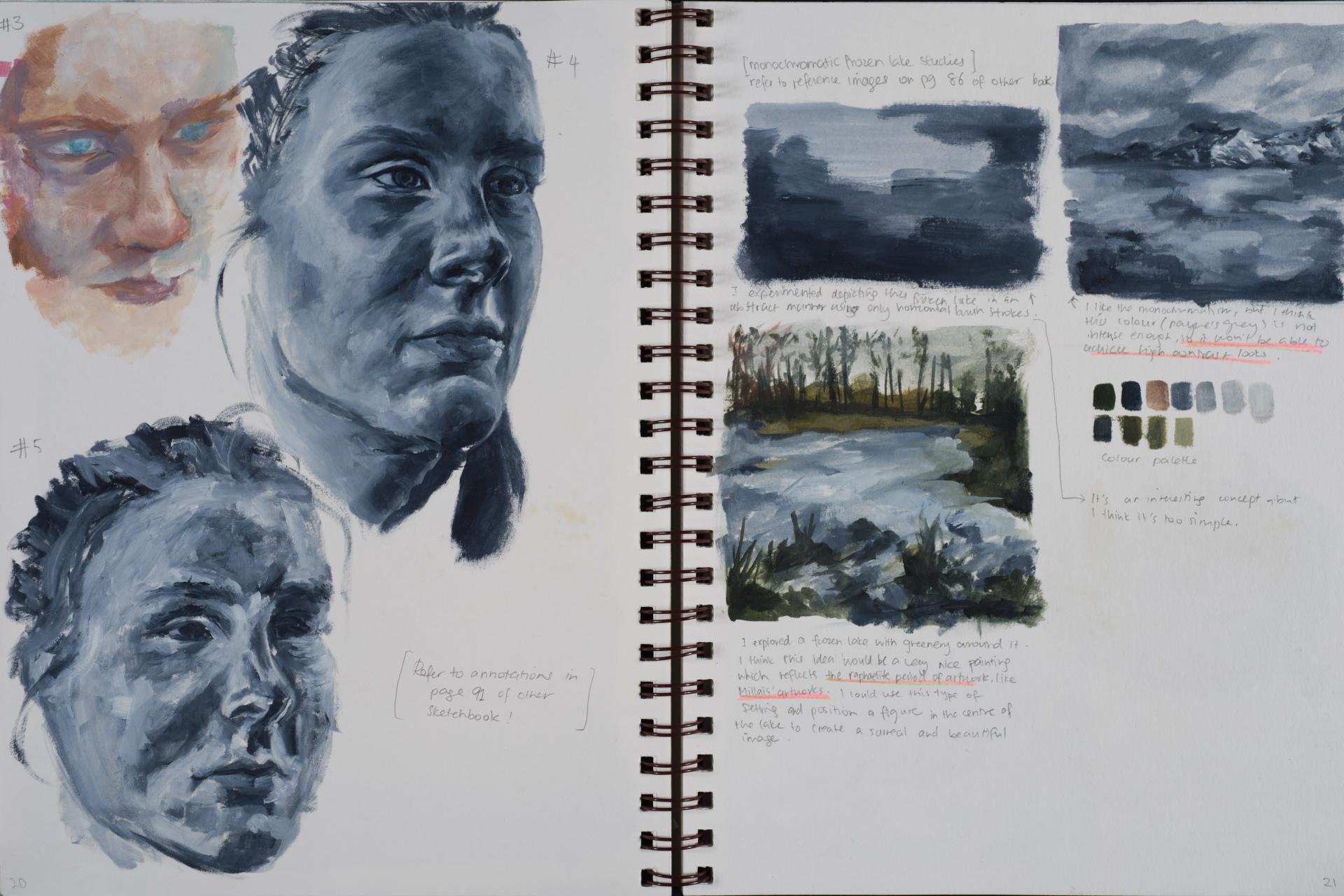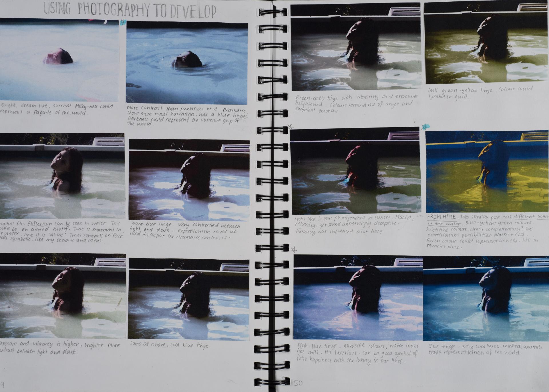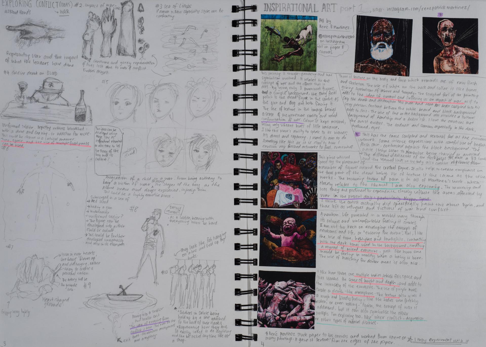 Grace engaged in the exploration of the human condition and conflict from the beginning of her folio. You can see the generation and exploration of concepts and themes in large comprehensive brainstorms. The scope and communication of her personal responses is comprehensive and clear.