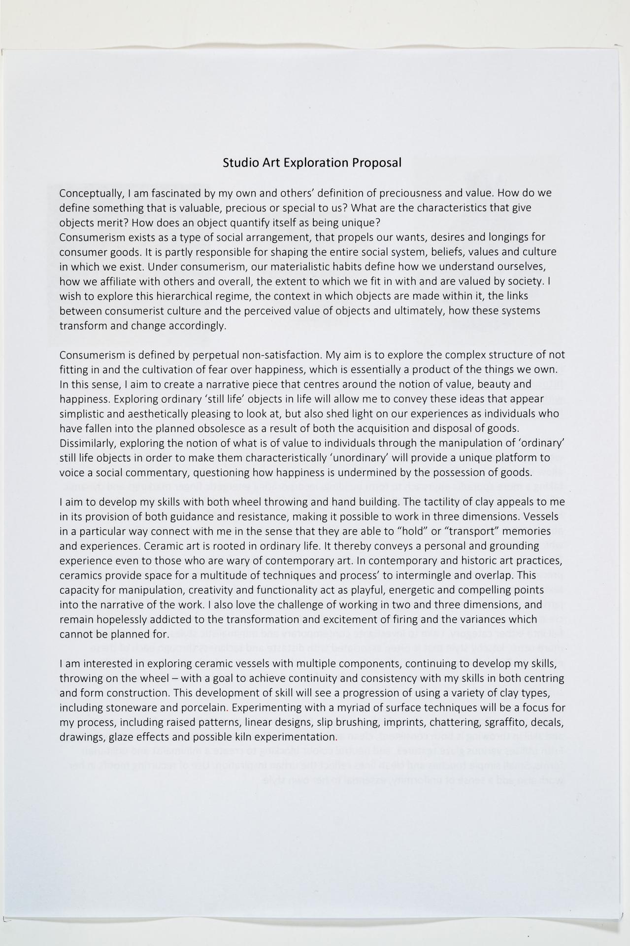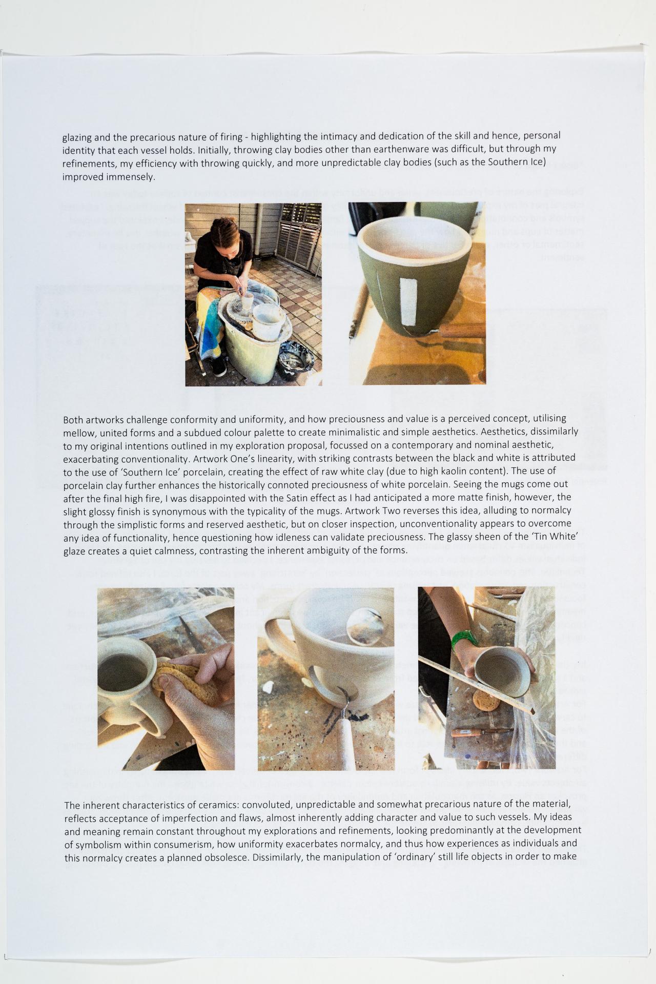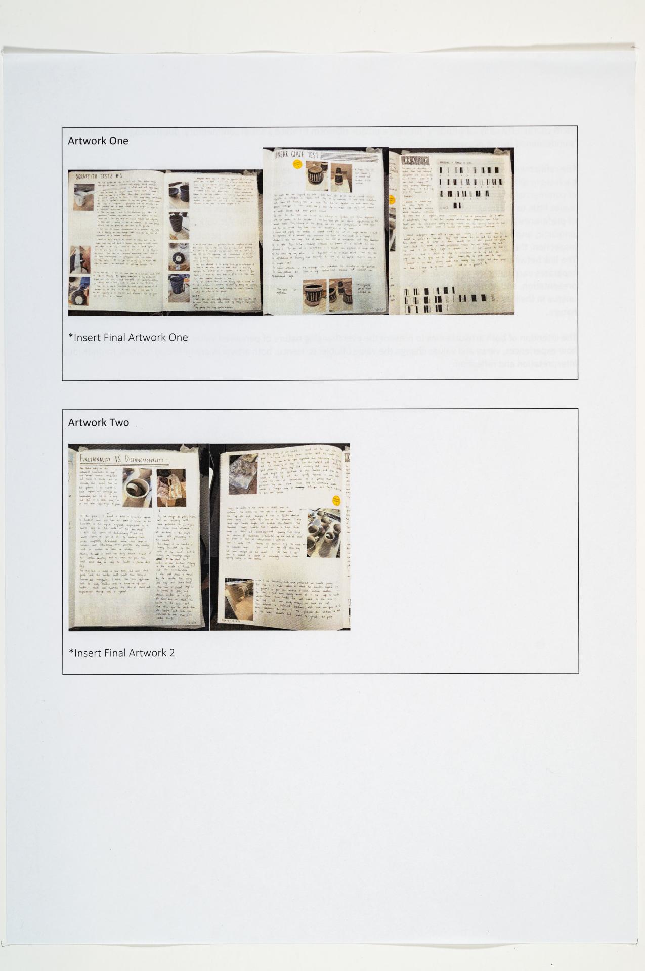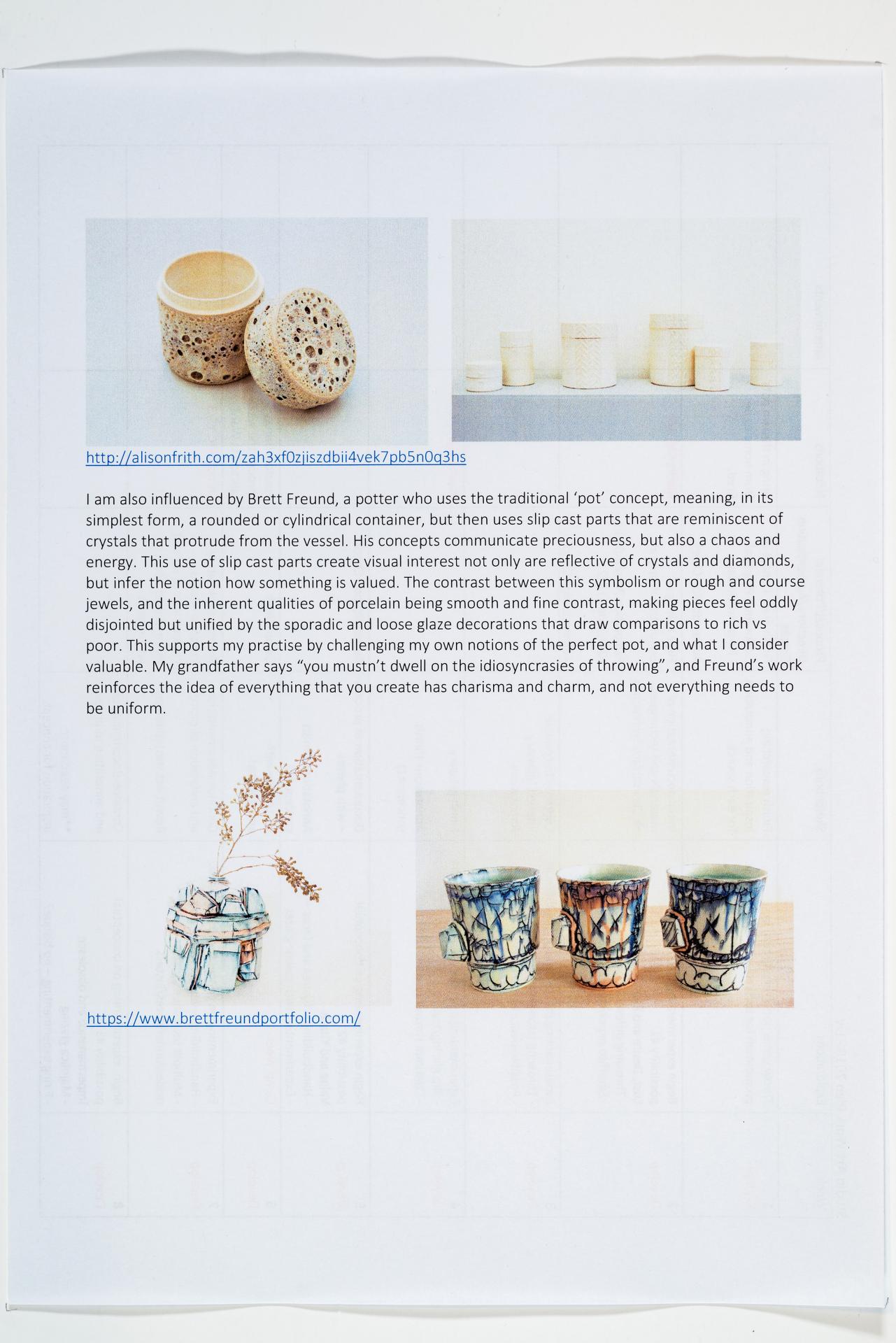 - Olivia’s written and visual documentation includes research, trials and experiments relating to the ideas expressed in the exploration proposal and work plan.