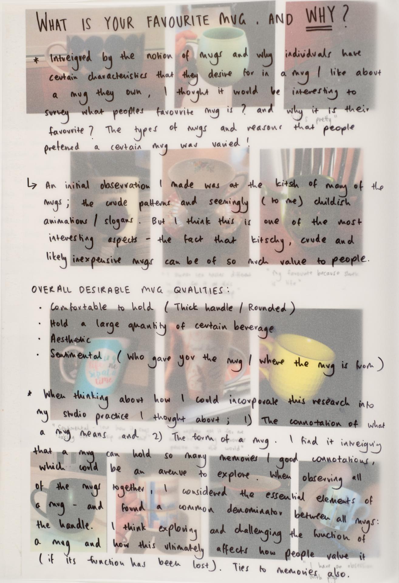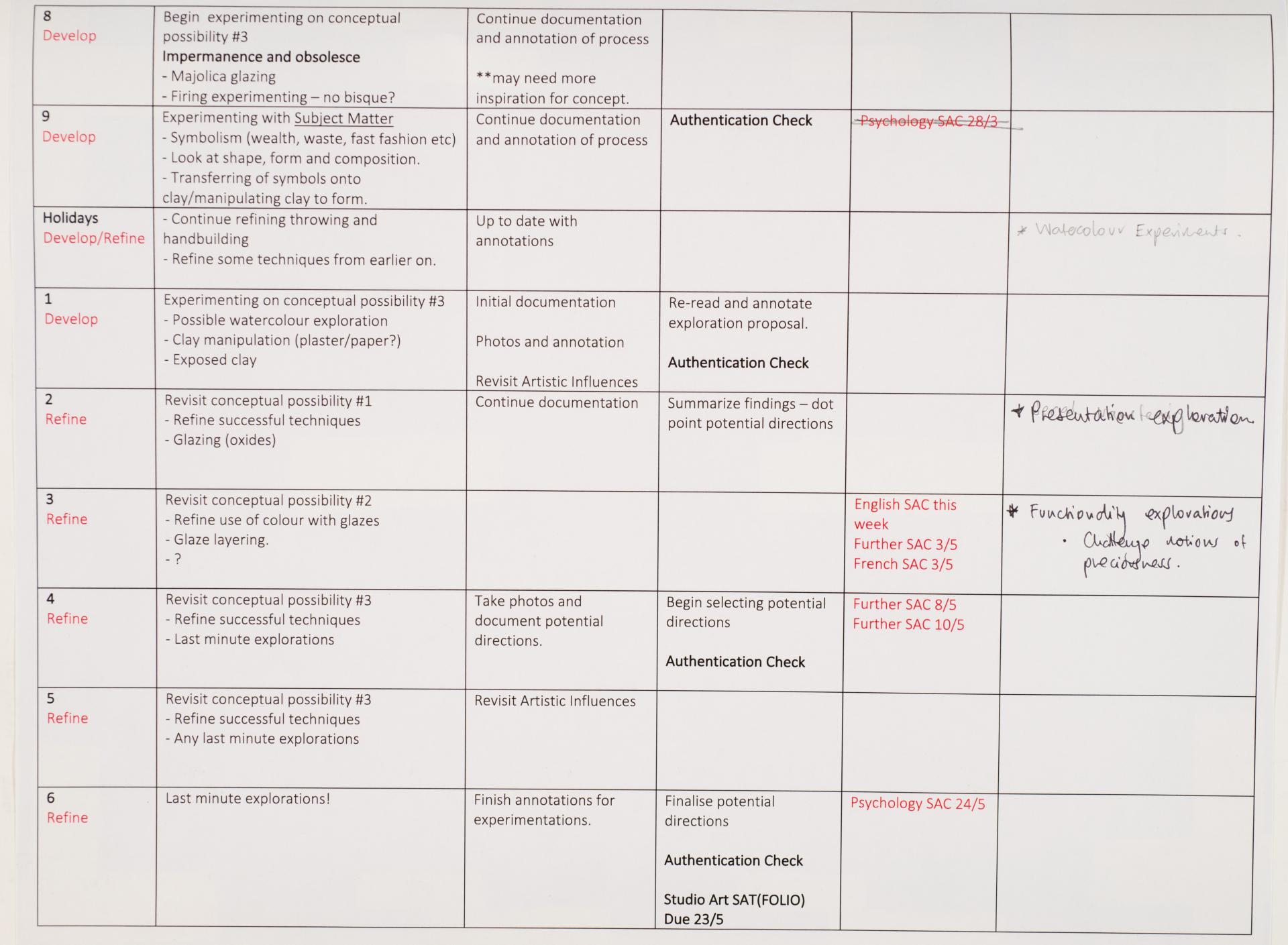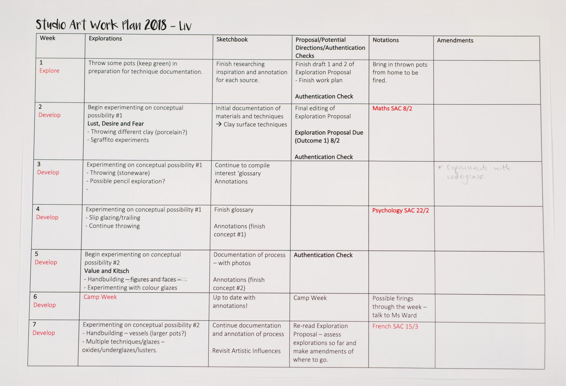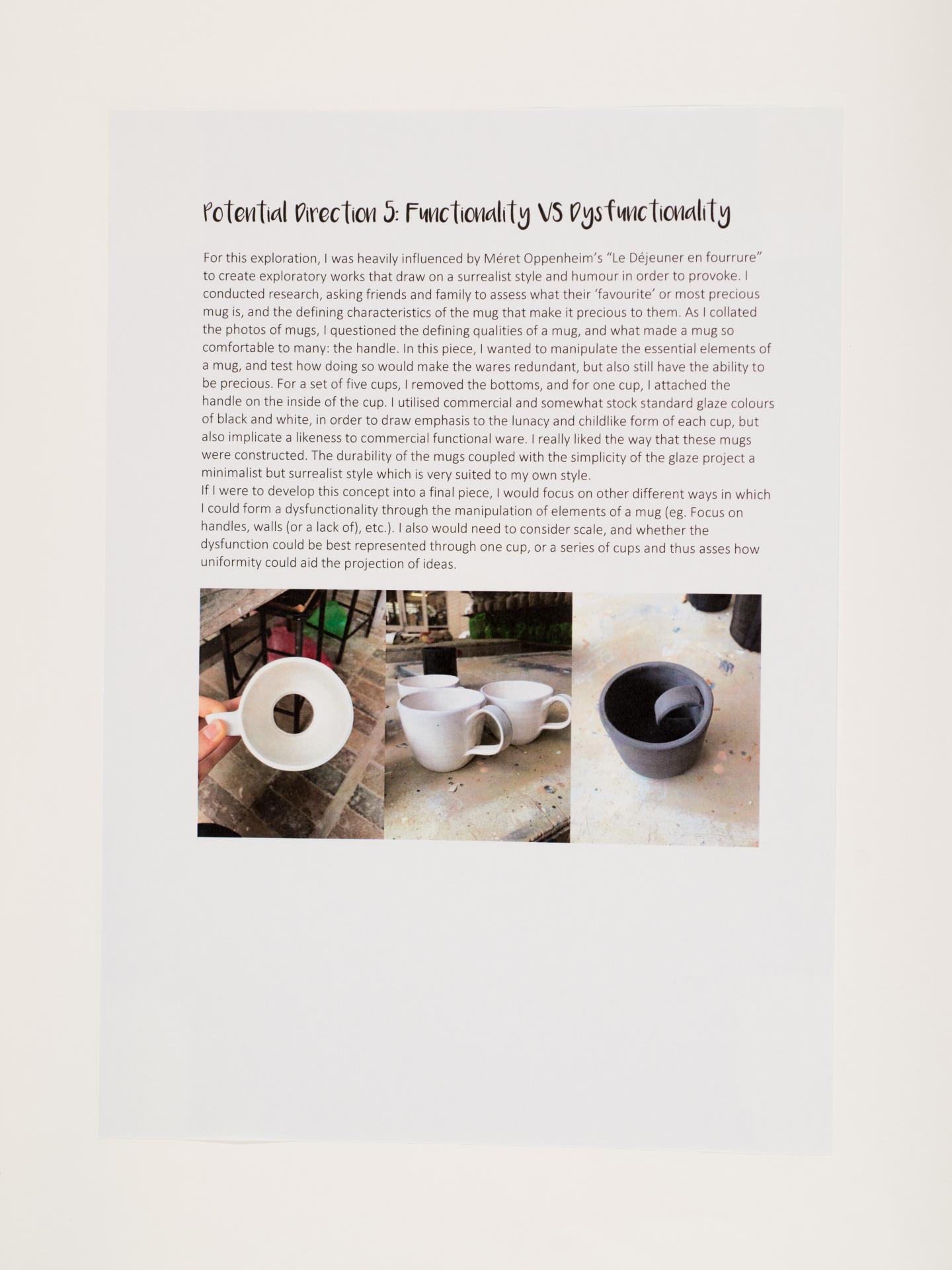 - Olivia’s written and visual documentation includes research, trials and experiments relating to the ideas expressed in the exploration proposal and work plan.