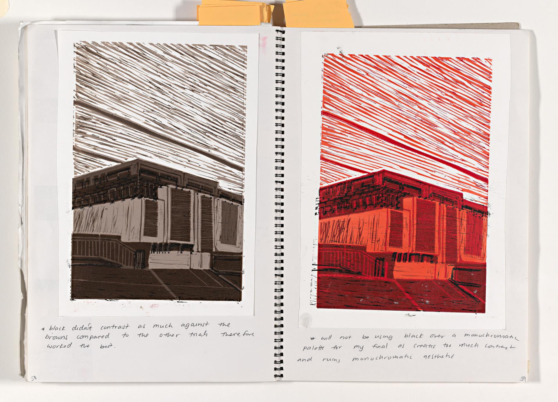 - Millie has carefully considered the way the Prints are presented to enhance the overall cohesiveness of the artworks and emphasised their connectedness through the choice of subject matter, materials, techniques and aesthetic qualities.