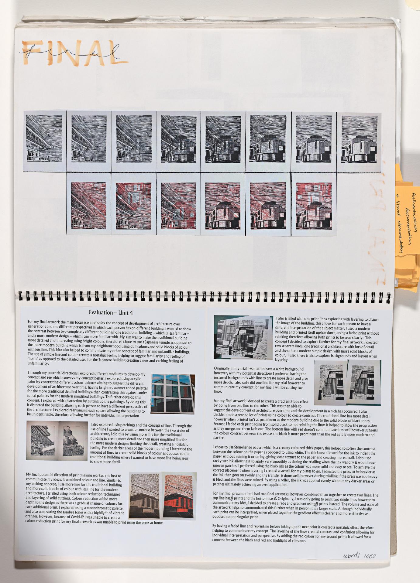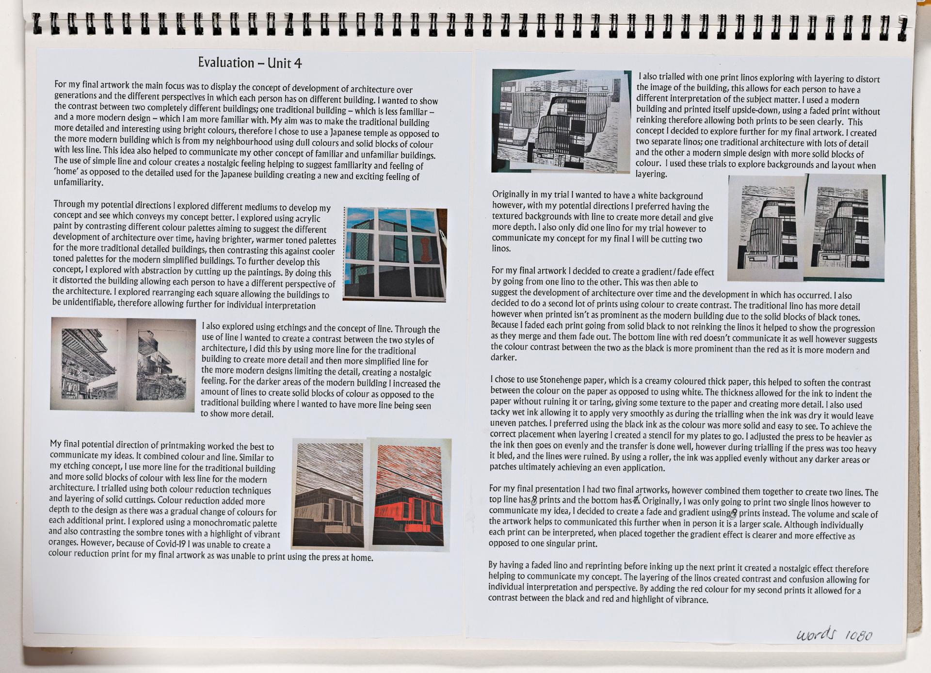 Students who have used work produced in Unit 3, because they have been unable to develop new work in Unit 4 must demonstrate significant development of the artwork. These changes should be recorded in documentation along with the reasons for using Unit 3 work. In Millie’s case she was able to re shoot for images in Unit 4.