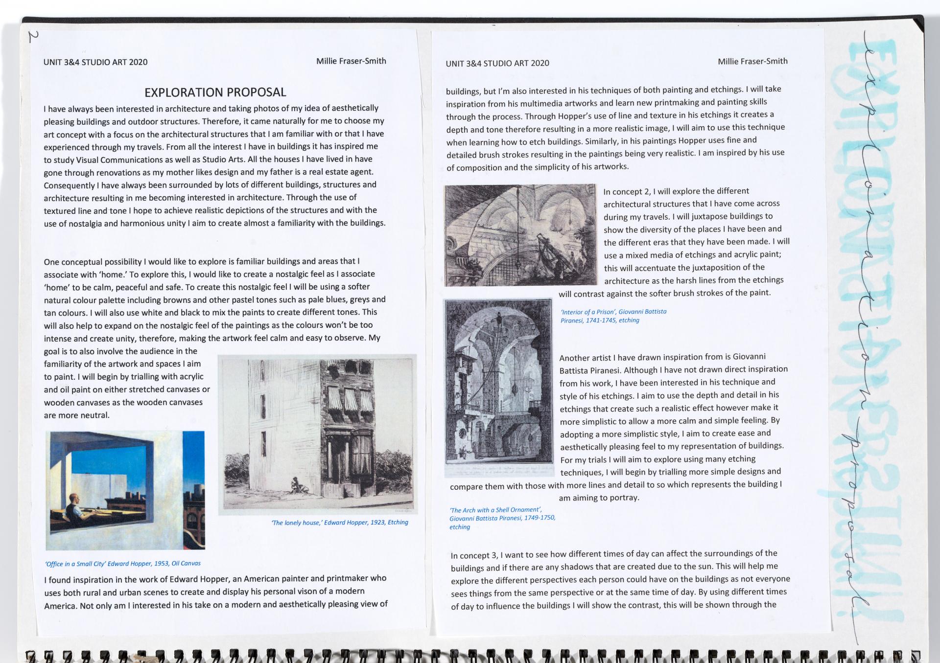 The presentation of the artwork/s is linked to the exploration proposal and studio process by themes and ideas.