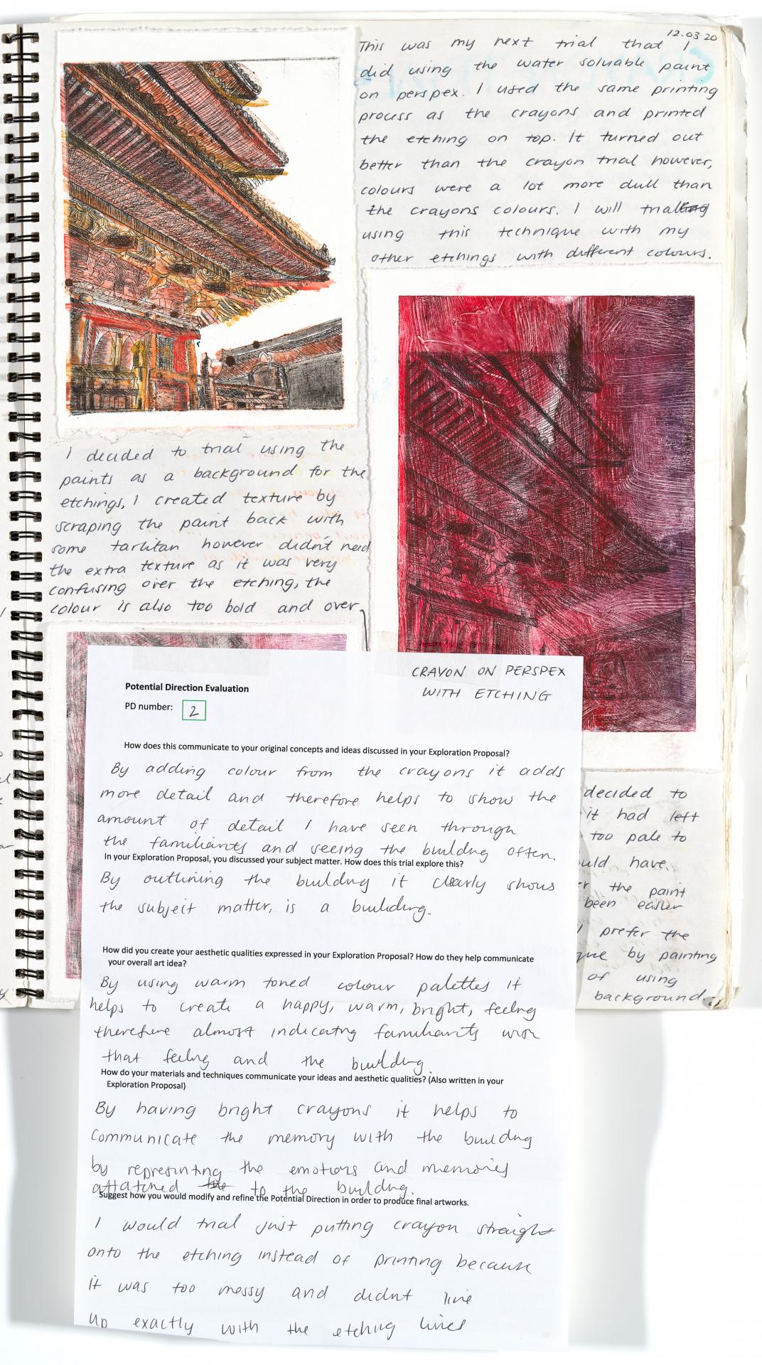 Criterion 9 is assessed based on the presentation of the artwork/s and the documentation of the exploration proposal and studio process. There must be a clear