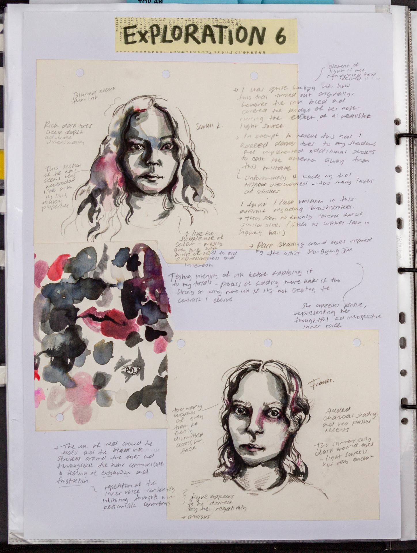 The exploration proposal and work plan use art terminology to succinctly discuss written and visual material that connects and justifies ideas to explain how an individual studio process will be structured and managed.