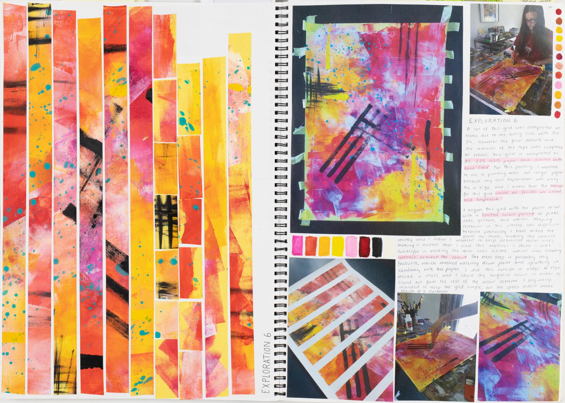 Clio refers to artistic sources of inspiration when experimenting with materials and techniques to develop subject matter and ideas. Clio documents the process and the development of ideas and subject matter from her research of the artist and their use of techniques, art elements and principles.