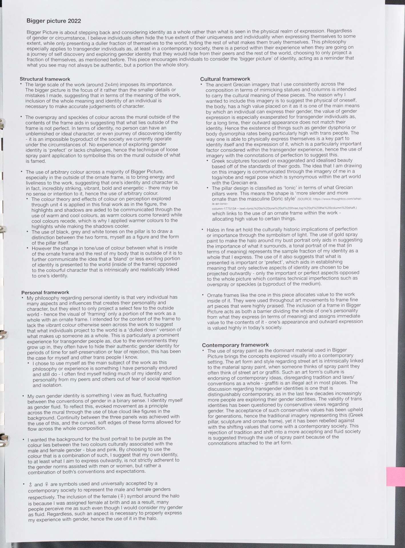 Emma has used critical and creative thinking to explore ideas that are important to them and that will become the focus of their body of work throughout Unit 3 Outcome 2 and Unit 4 Outcomes 1 & 2.