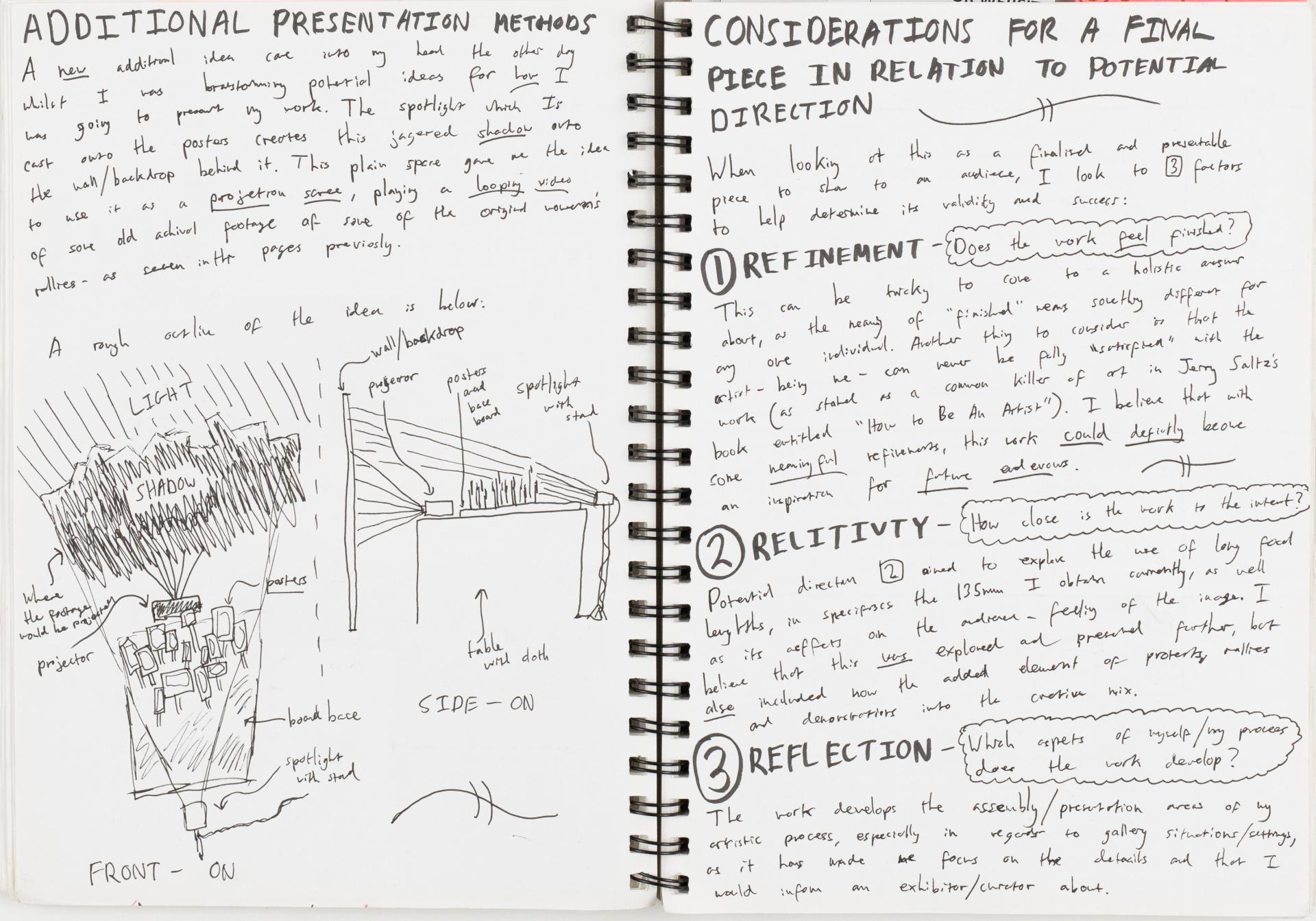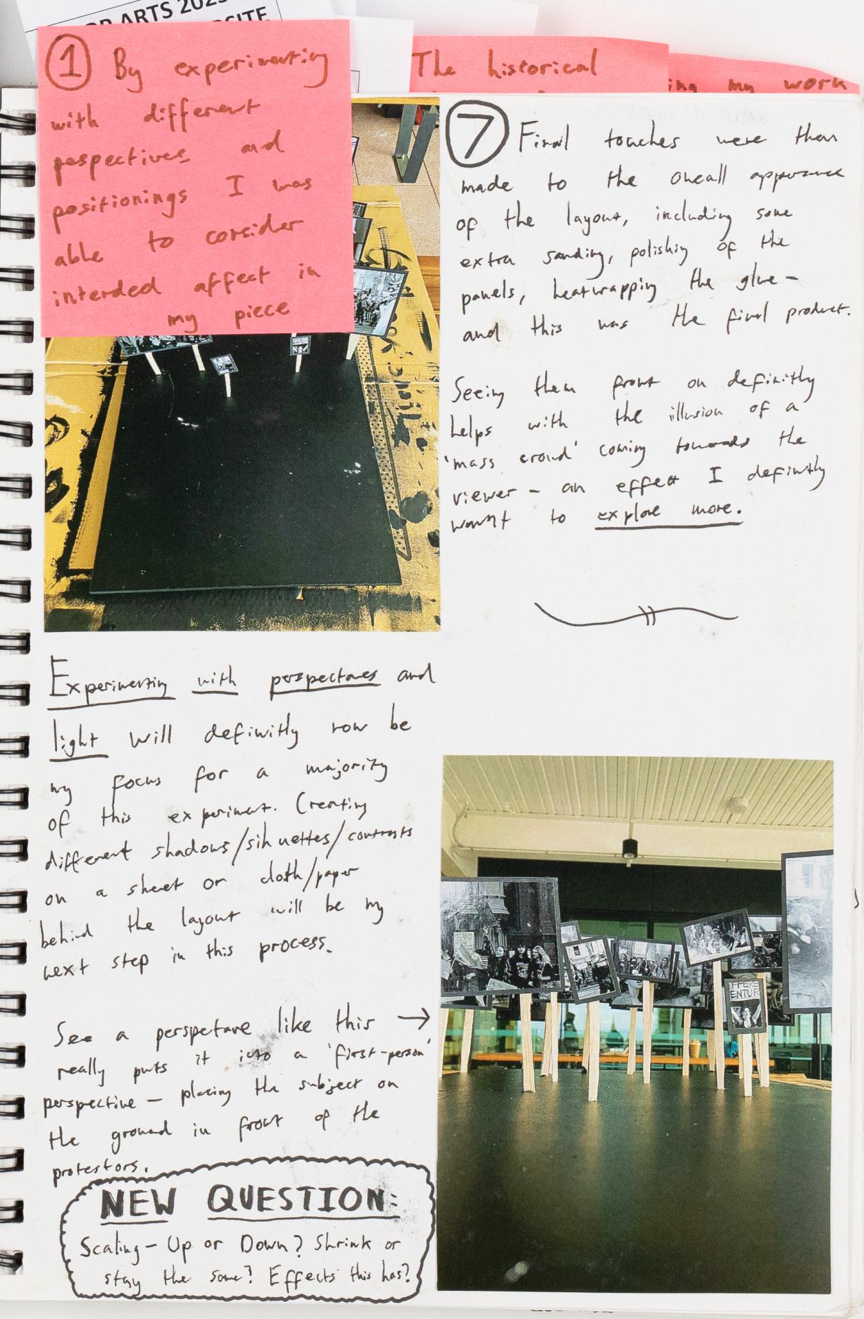 Milo critically evaluated the development of visual language used to communicate ideas and issues. Throughout the documentation Milo used reflection and evaluation to develop and refine his artwork. In this example they are evaluating the use of perspective in the presentation of their artworks.