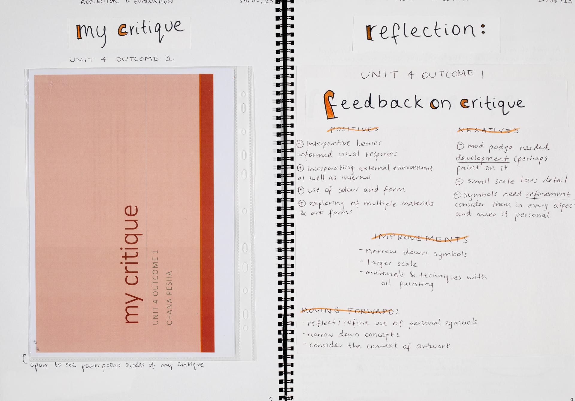 Chana presented her Body of Work in a specific context to communicate ideas and meaning to an audience. She evaluated how the presentation and context of the Body of Work effectively communicates ideas and meaning to a viewer or audience.