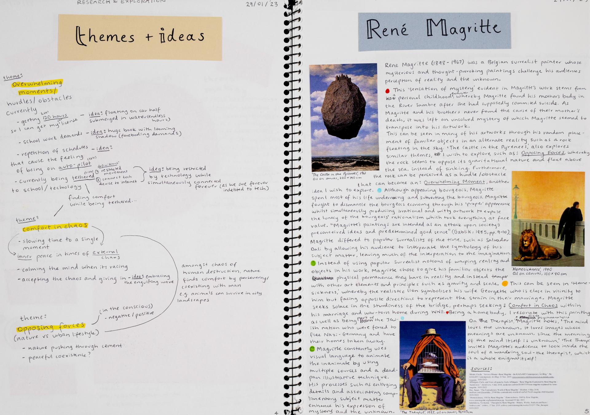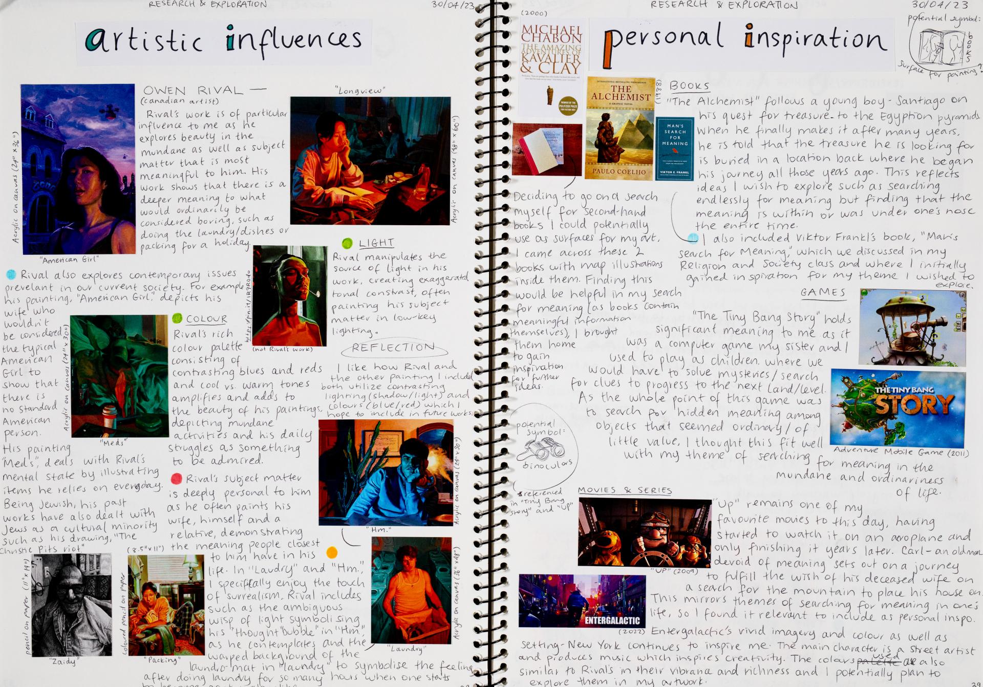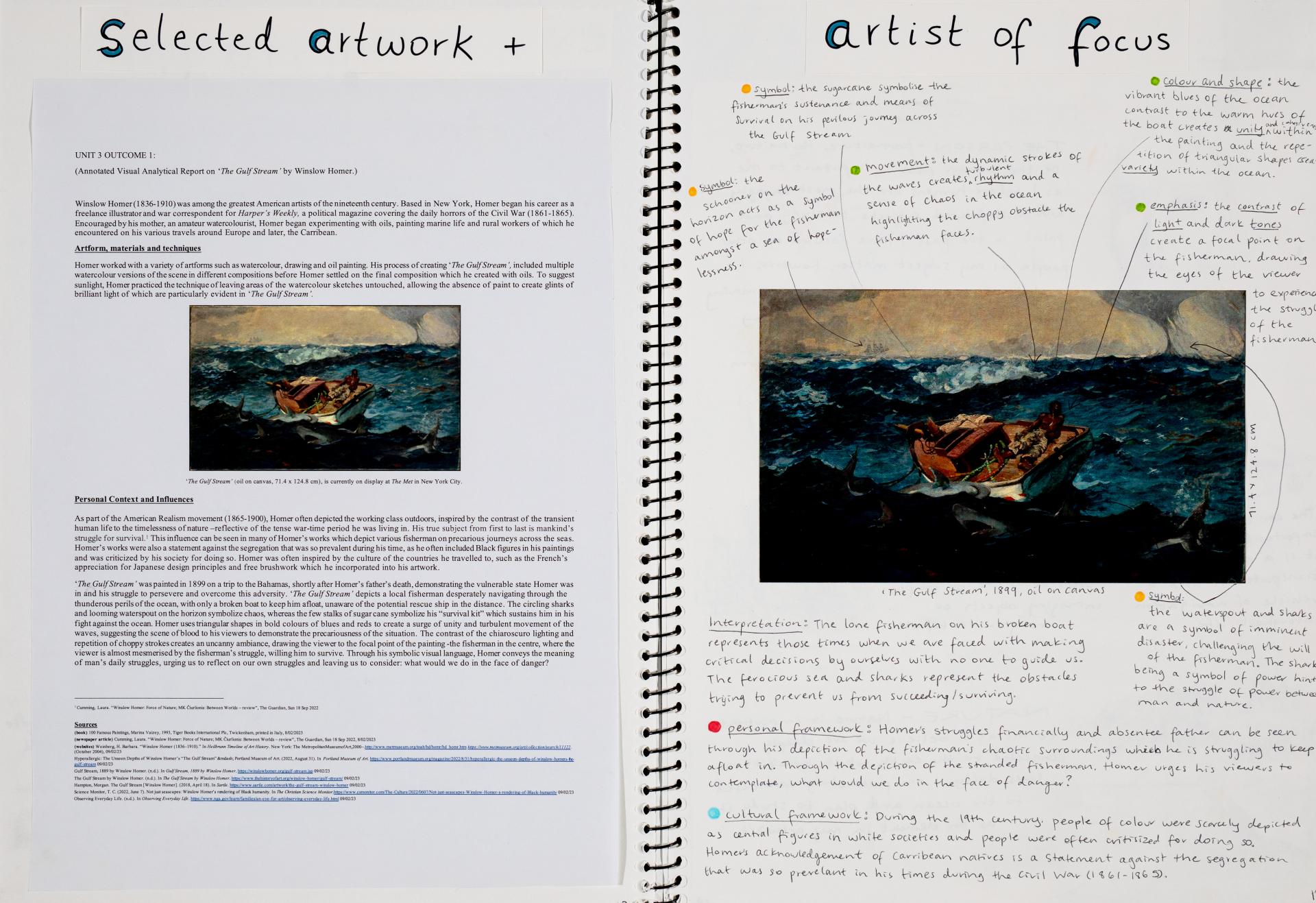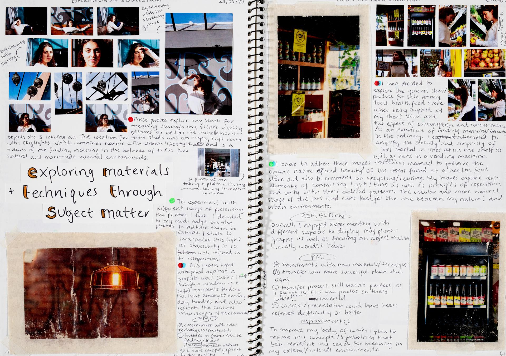 In Unit 4 Chana presented one finished artwork that resolved her intentions. The context of this work and how the audience engaged with it was an important consideration for her. Rather than presenting the painting in a traditional context, hanging on a gallery wall, Chana wanted the audience to “interact deeply” with her work. She considered how the presentation of the Body of Work could effectively communicate ideas and meaning to a viewer or audience. She paid attention to symbolism and how she could provide clues to “decode the messages” she wished to convey. She evaluated the presentation of her Body of Work and how she could make it more effective in the way it communicated ideas and meaning to the audience. This was done through the reflective annotations, and it referenced the objects that were added to the presentation after the painting was completed and how these were placed.