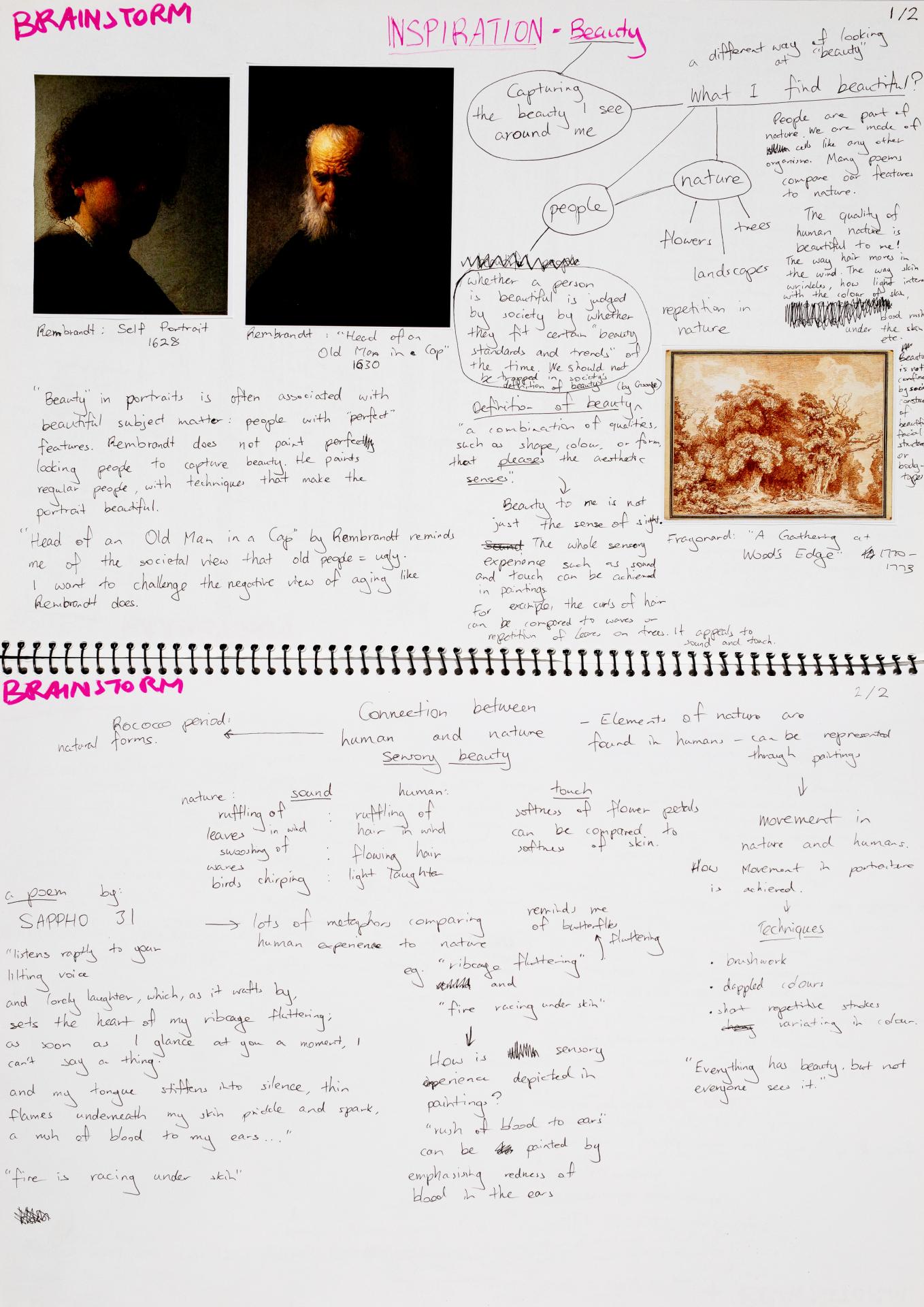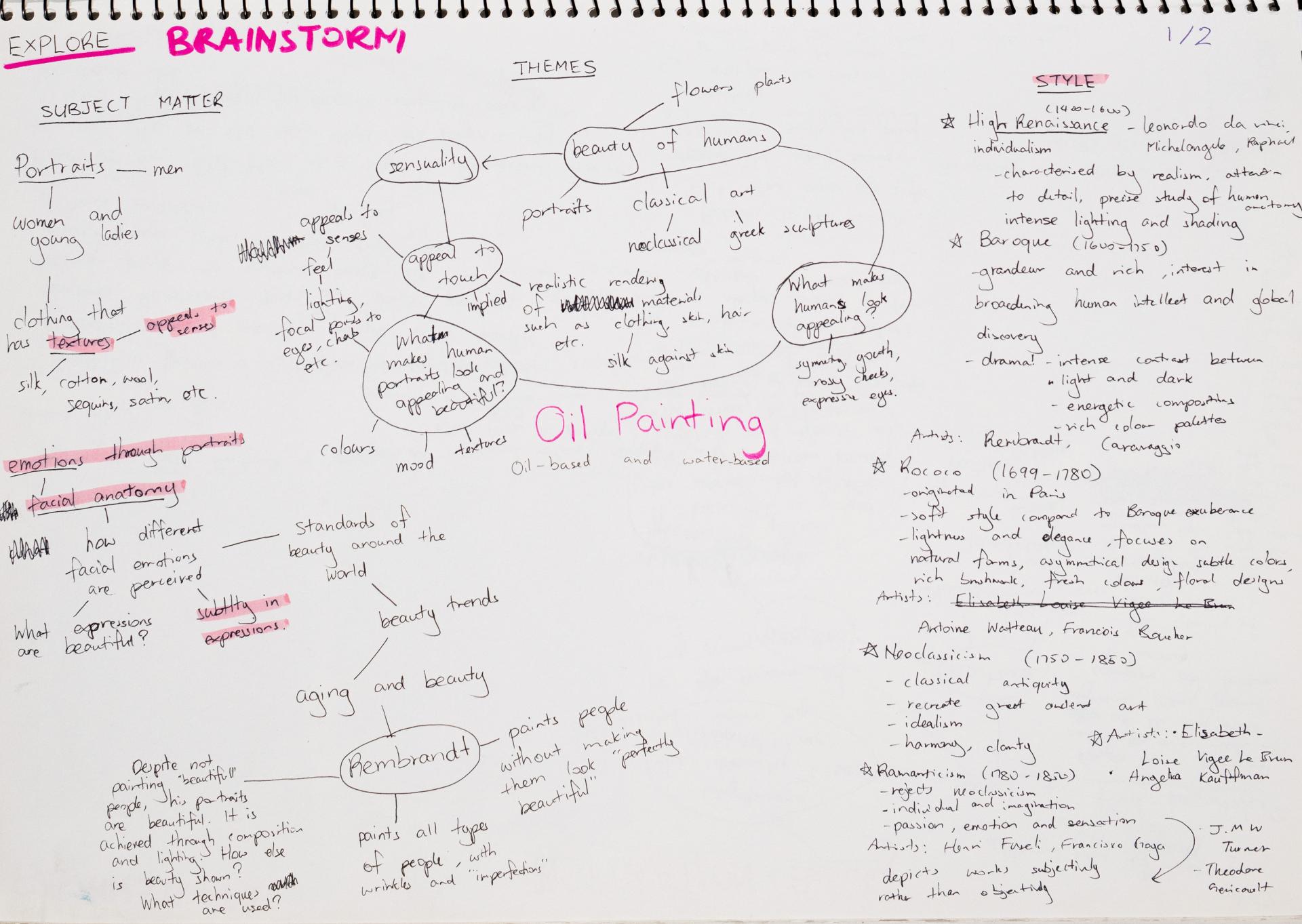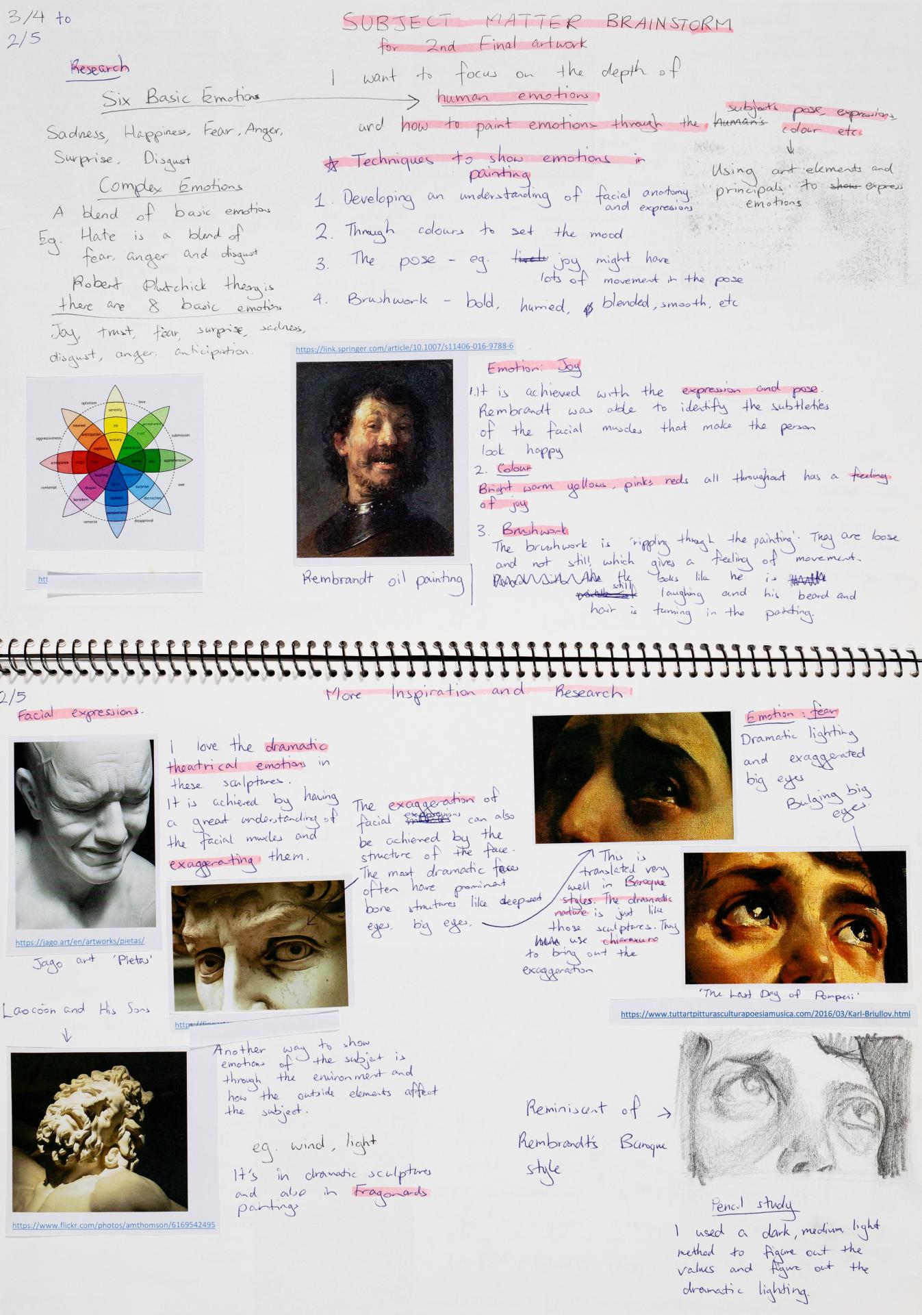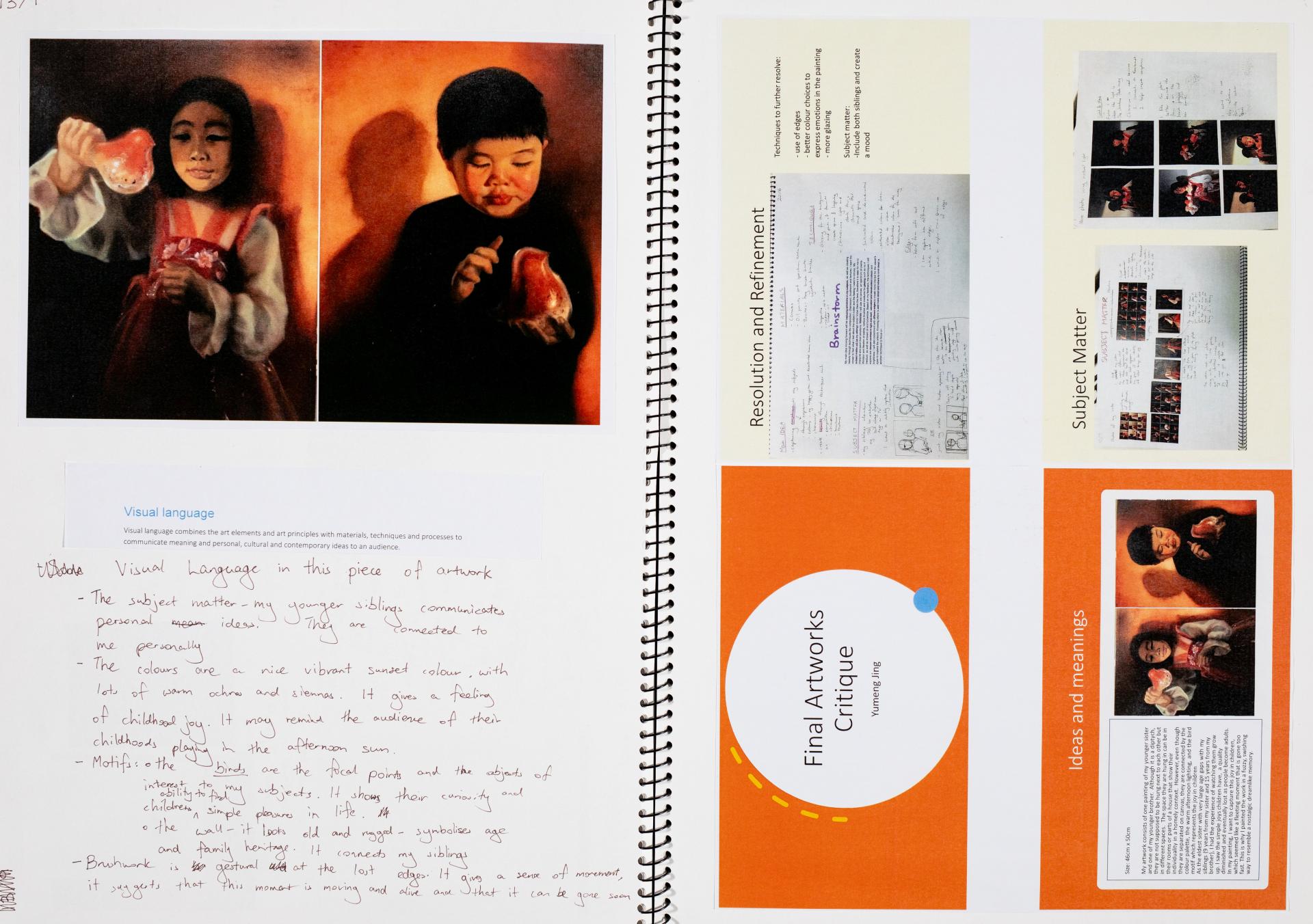 Kate begins exploring and evaluating artworks, influences and sources of inspiration by creating a mind-map in her Visual Arts journal, focusing on a specific art form.