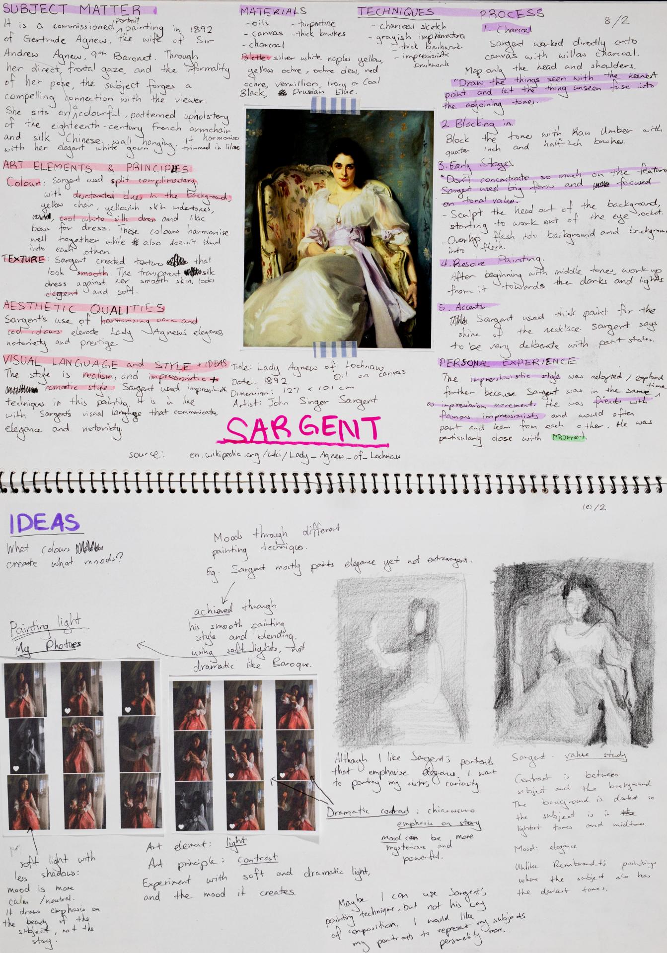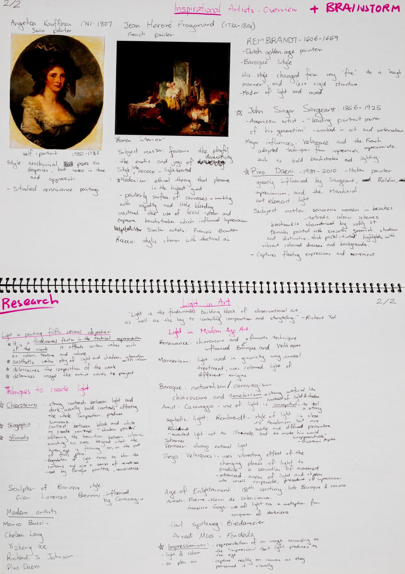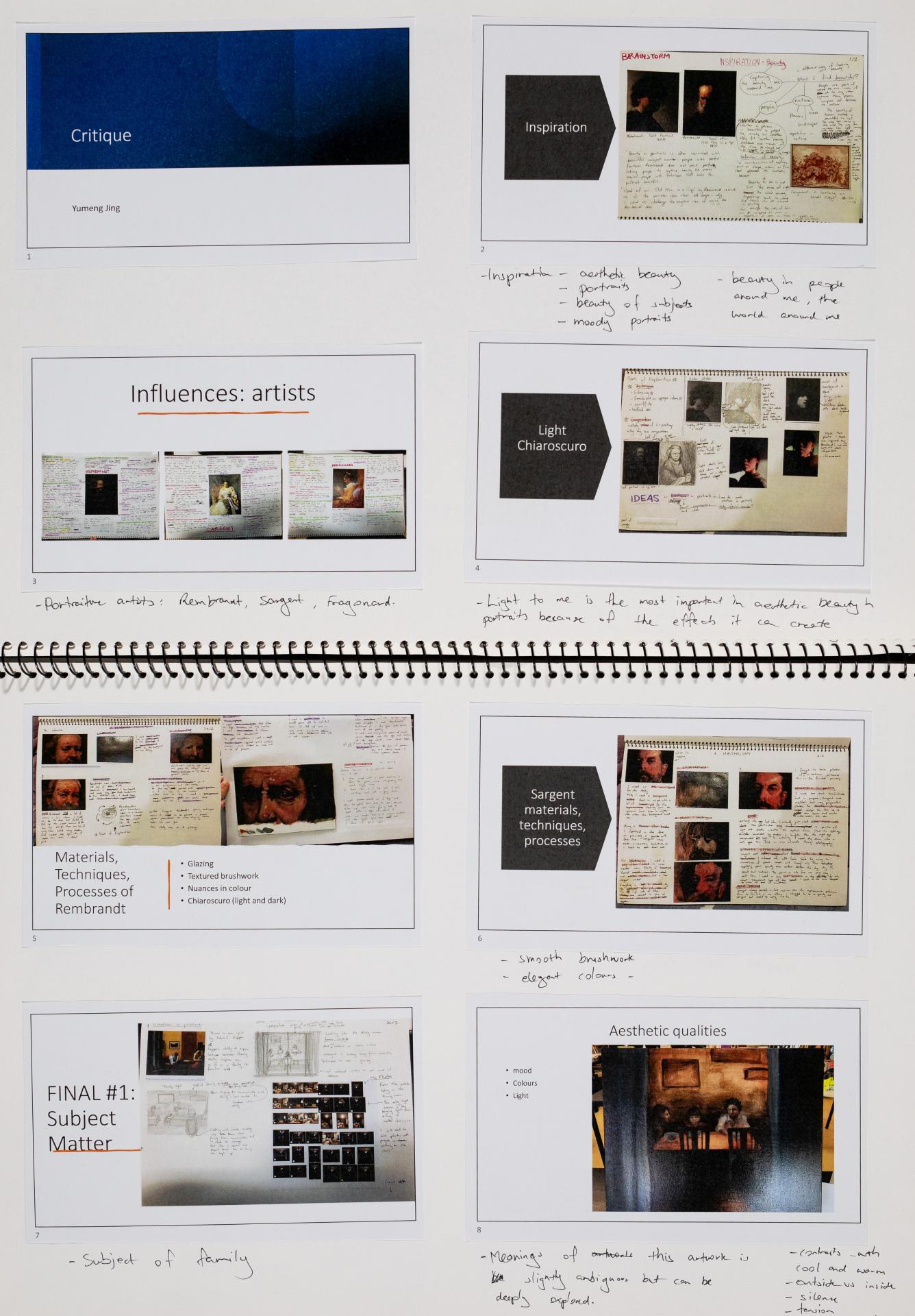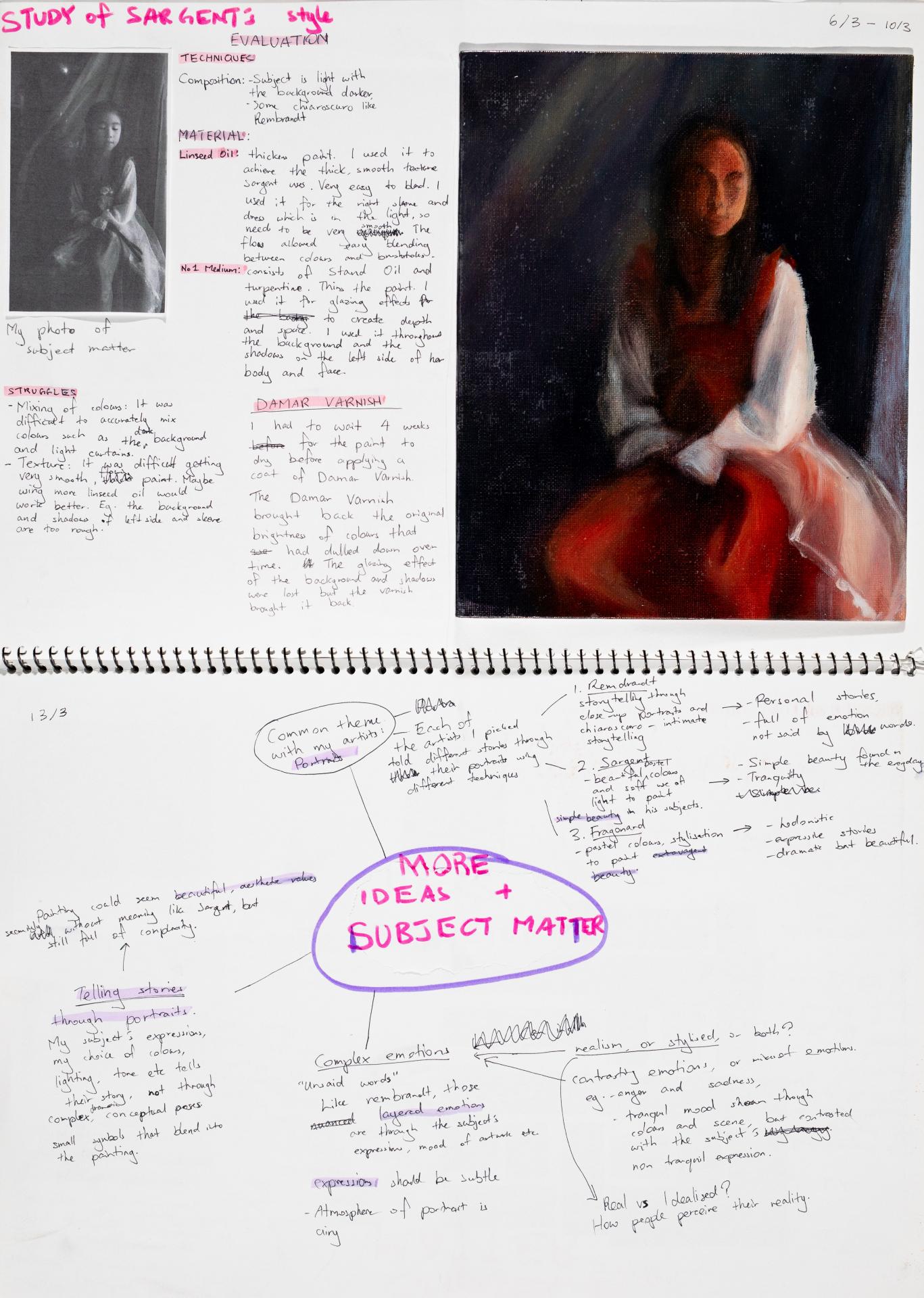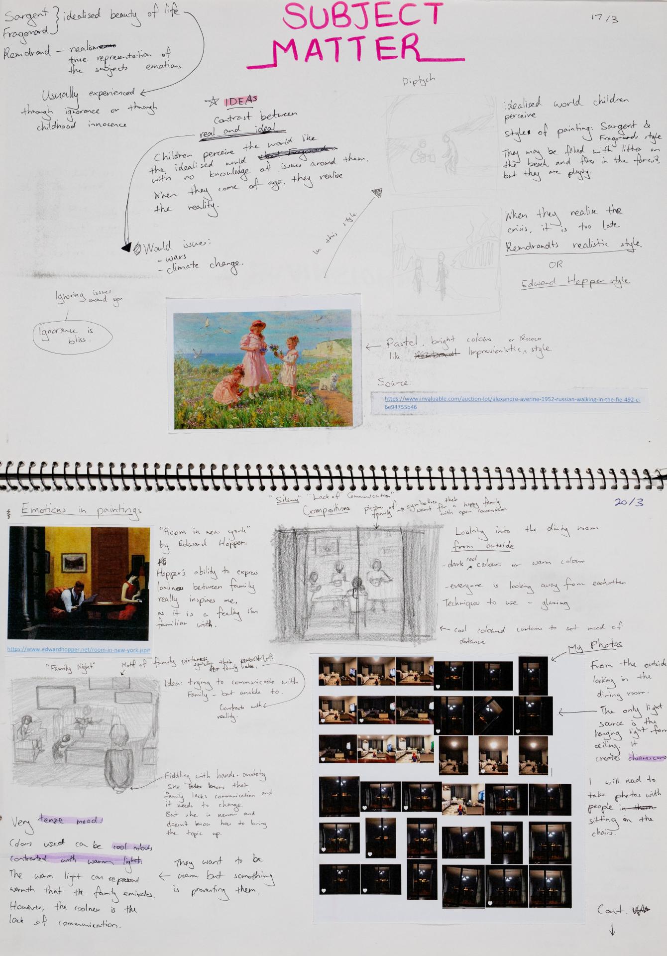 She documents her ideas, subject matter, artists, art movements and styles that may influence and inspire her ideas, subject matter and visual language.