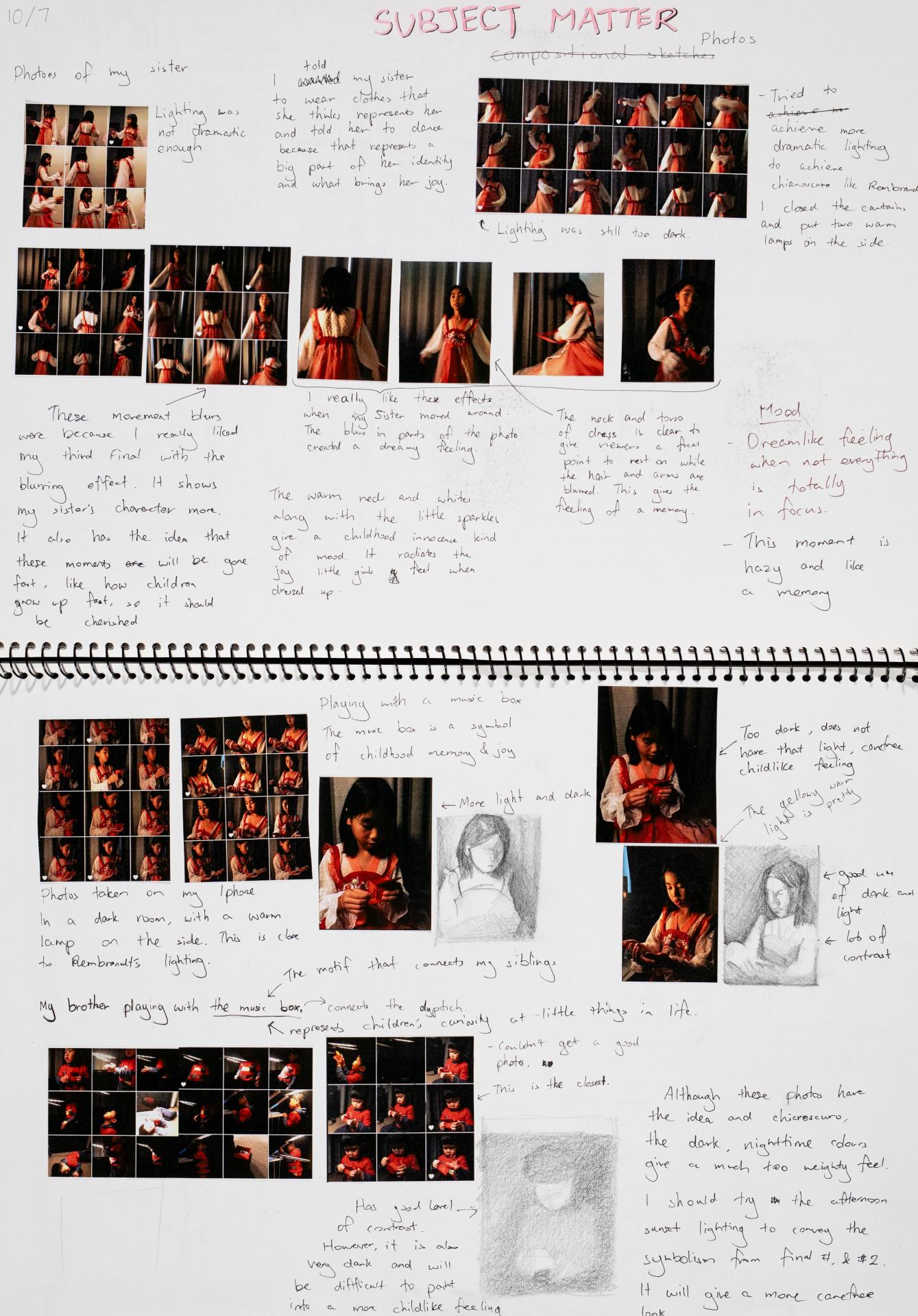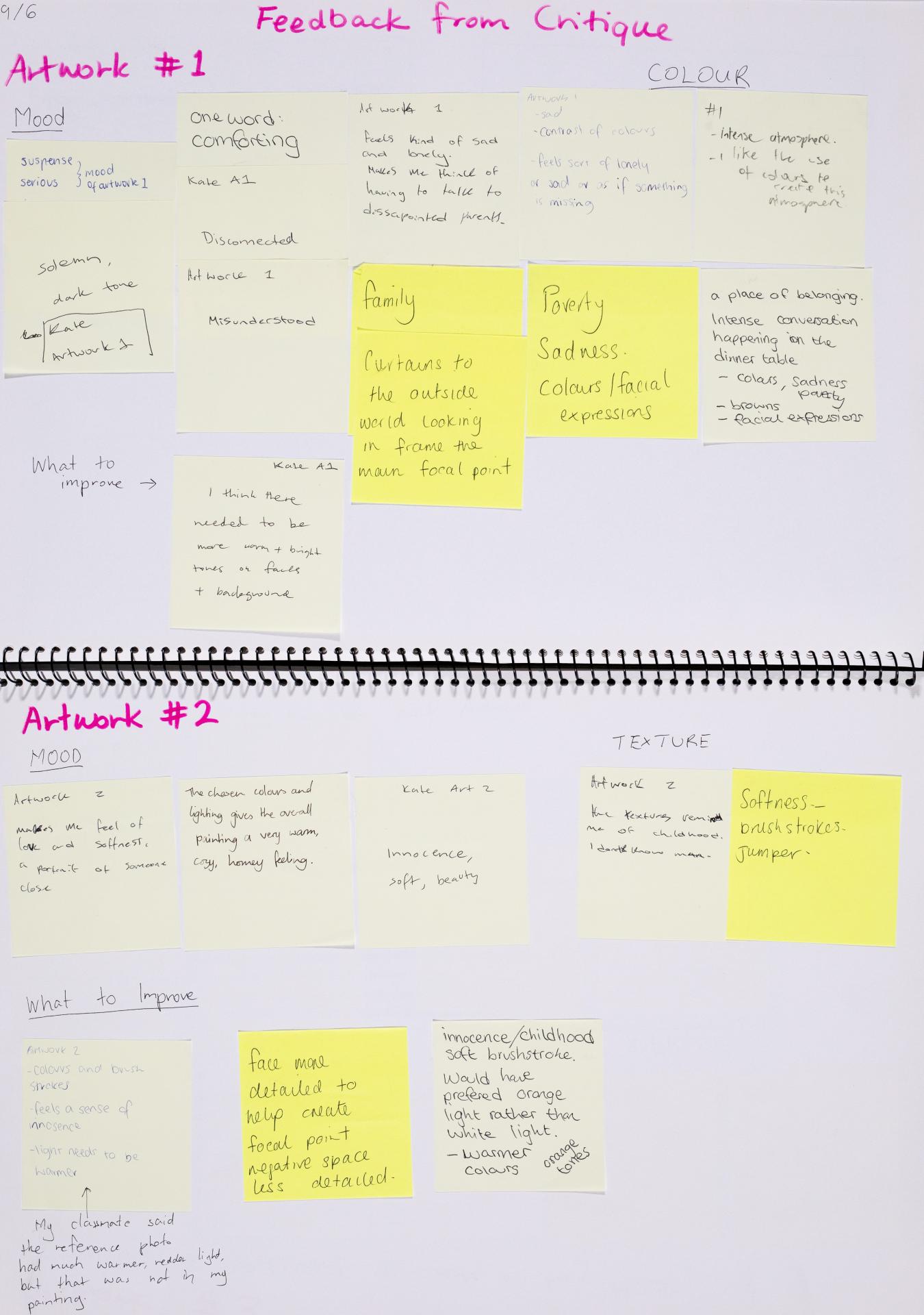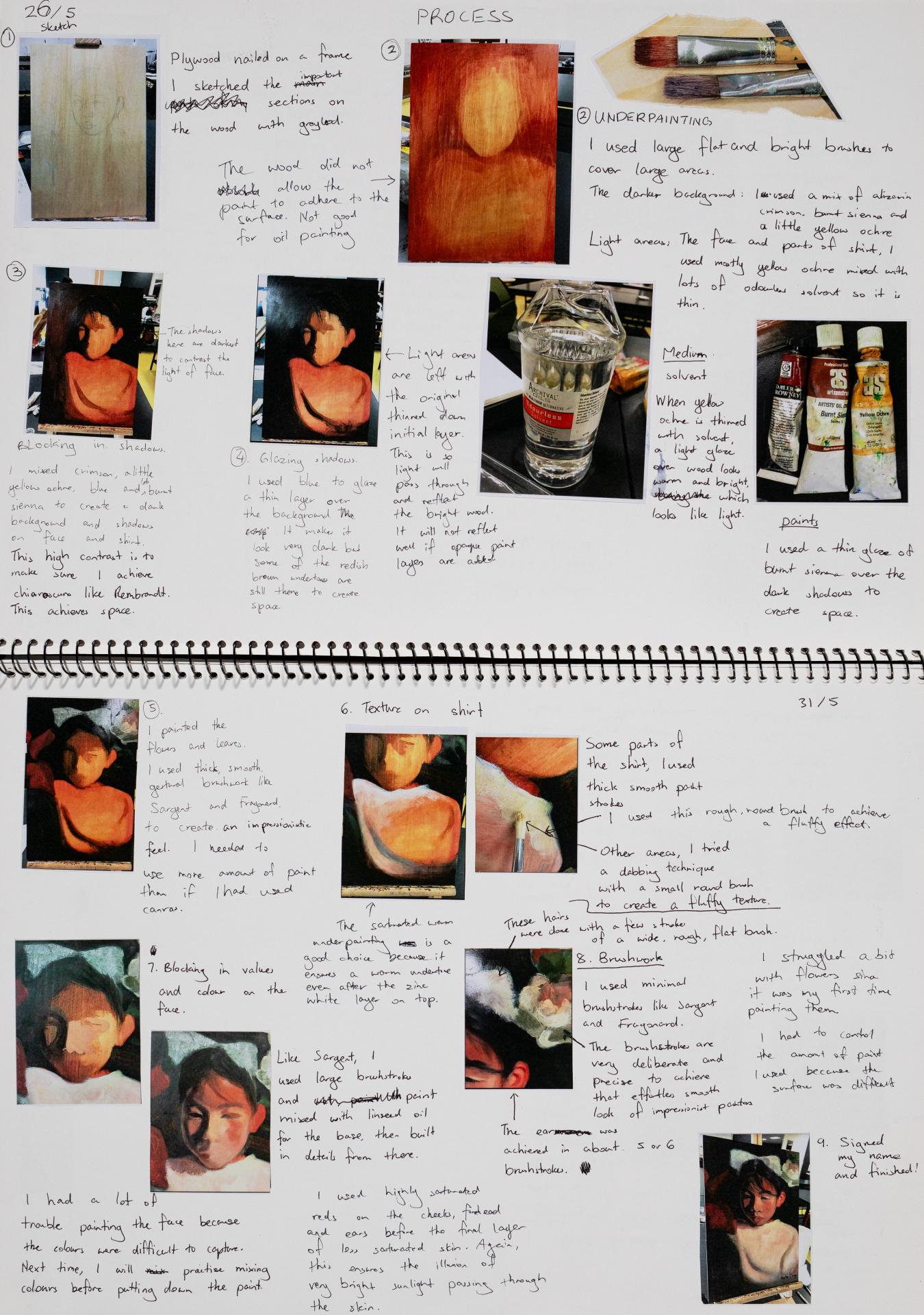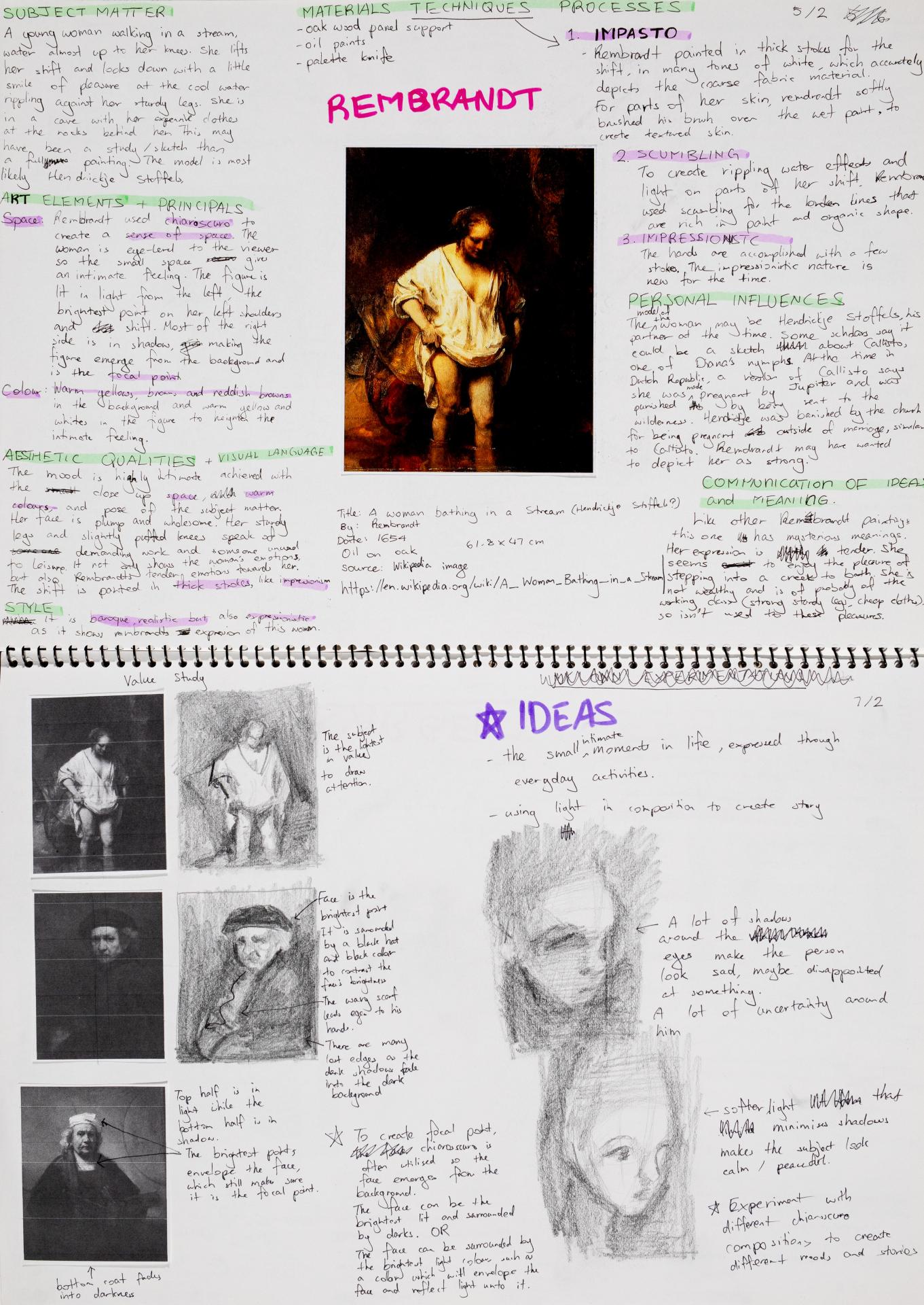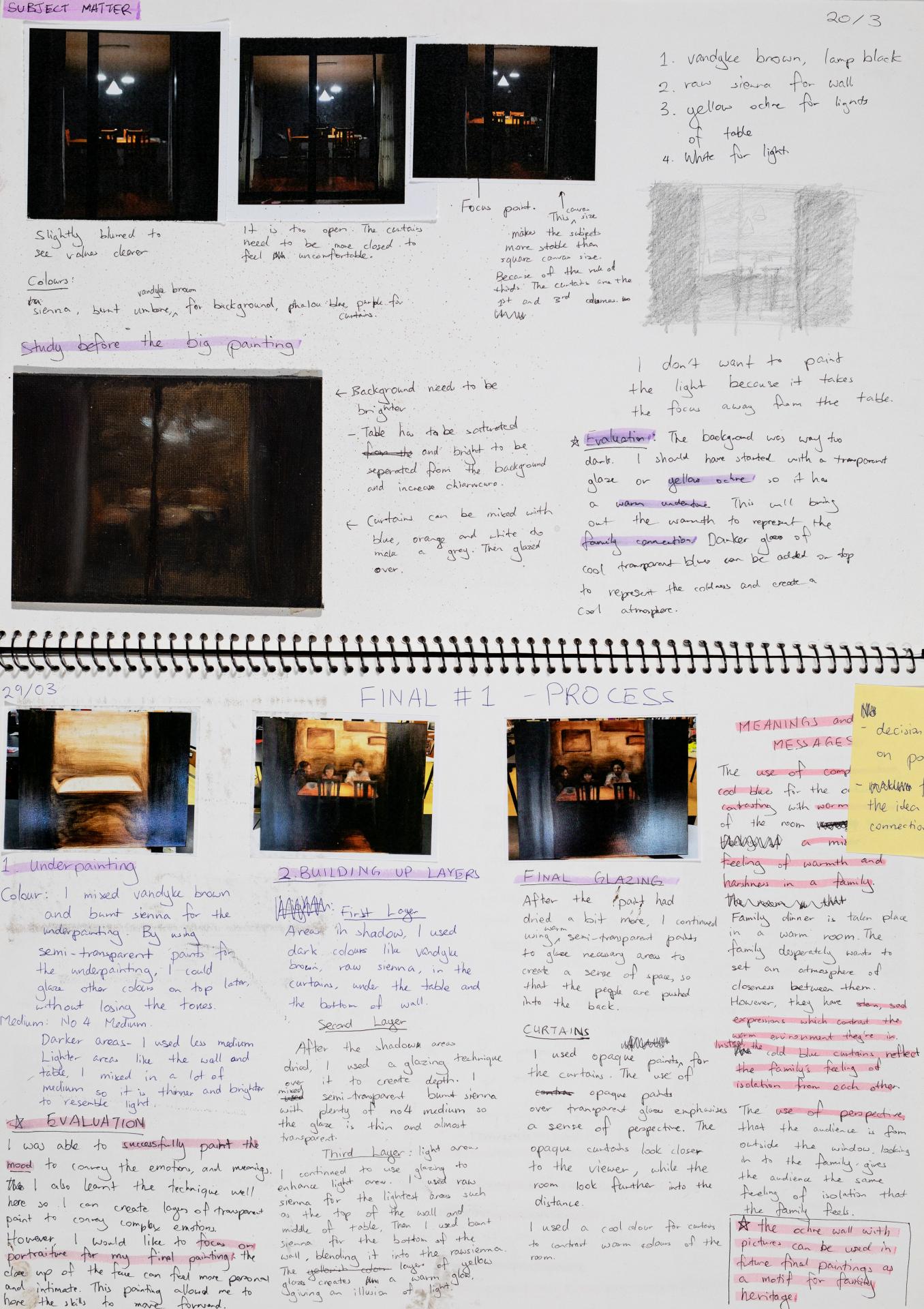 She documents her ideas, subject matter, artists, art movements and styles that may influence and inspire her ideas, subject matter and visual language.