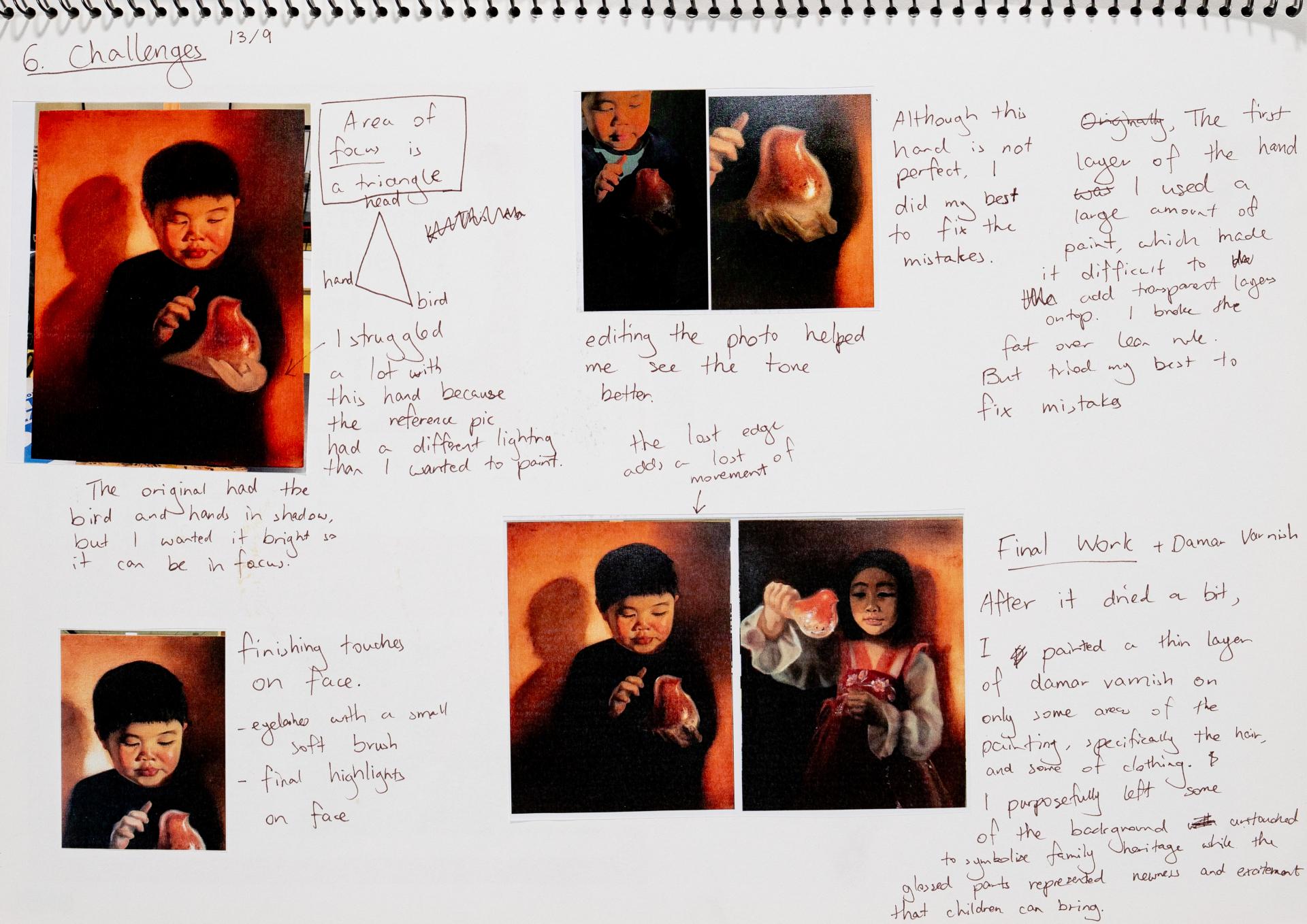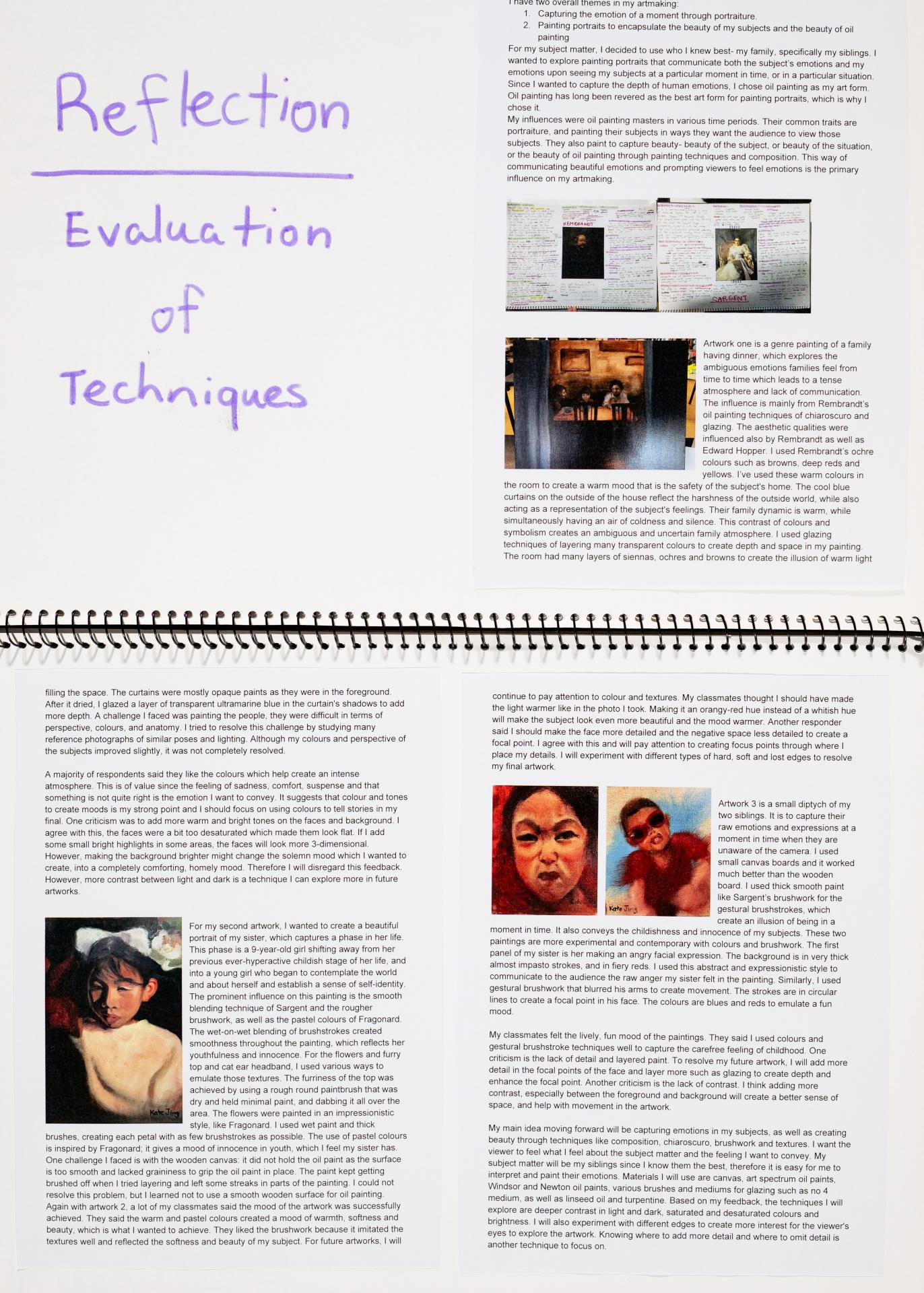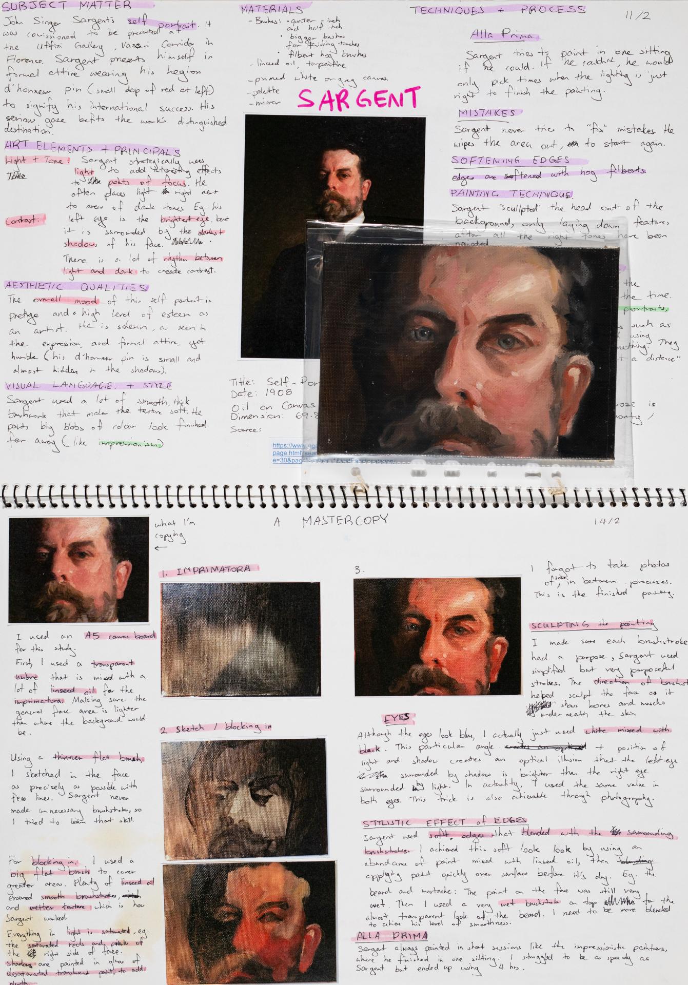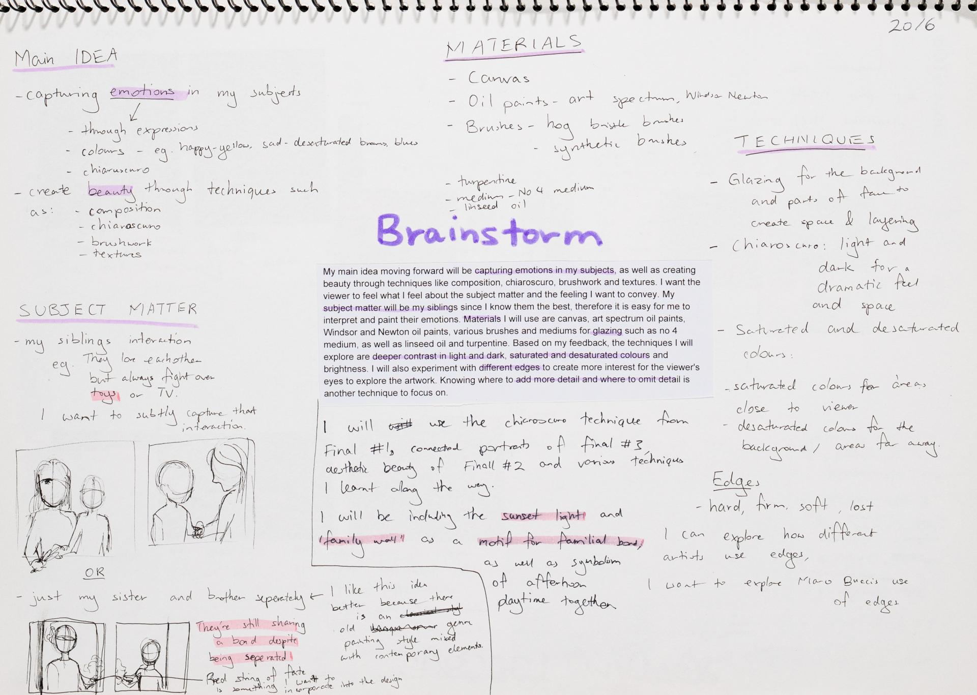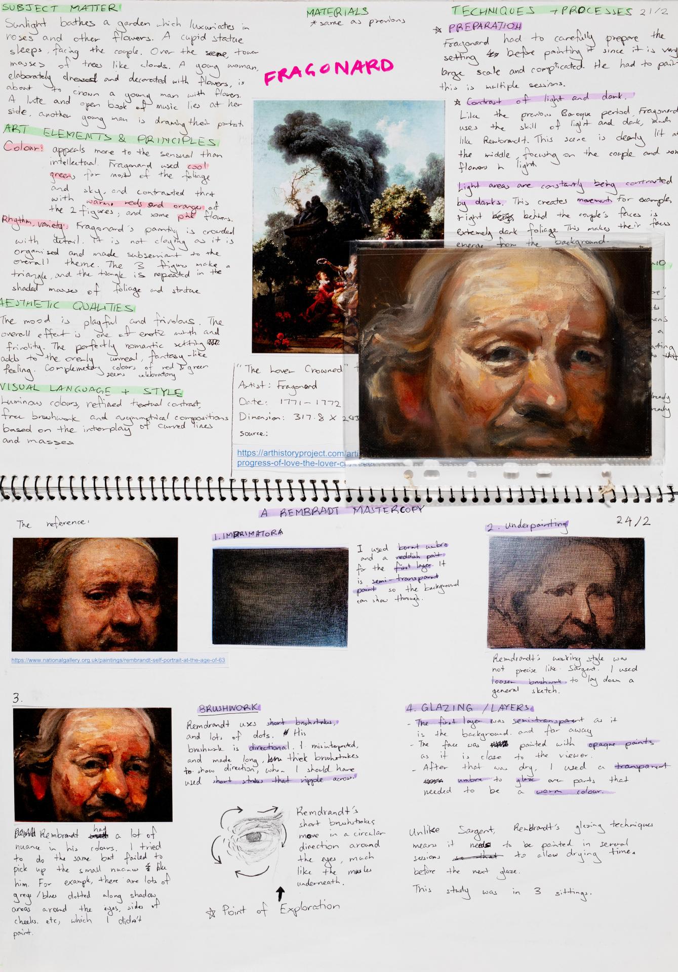 She documents her ideas, subject matter, artists, art movements and styles that may influence and inspire her ideas, subject matter and visual language.