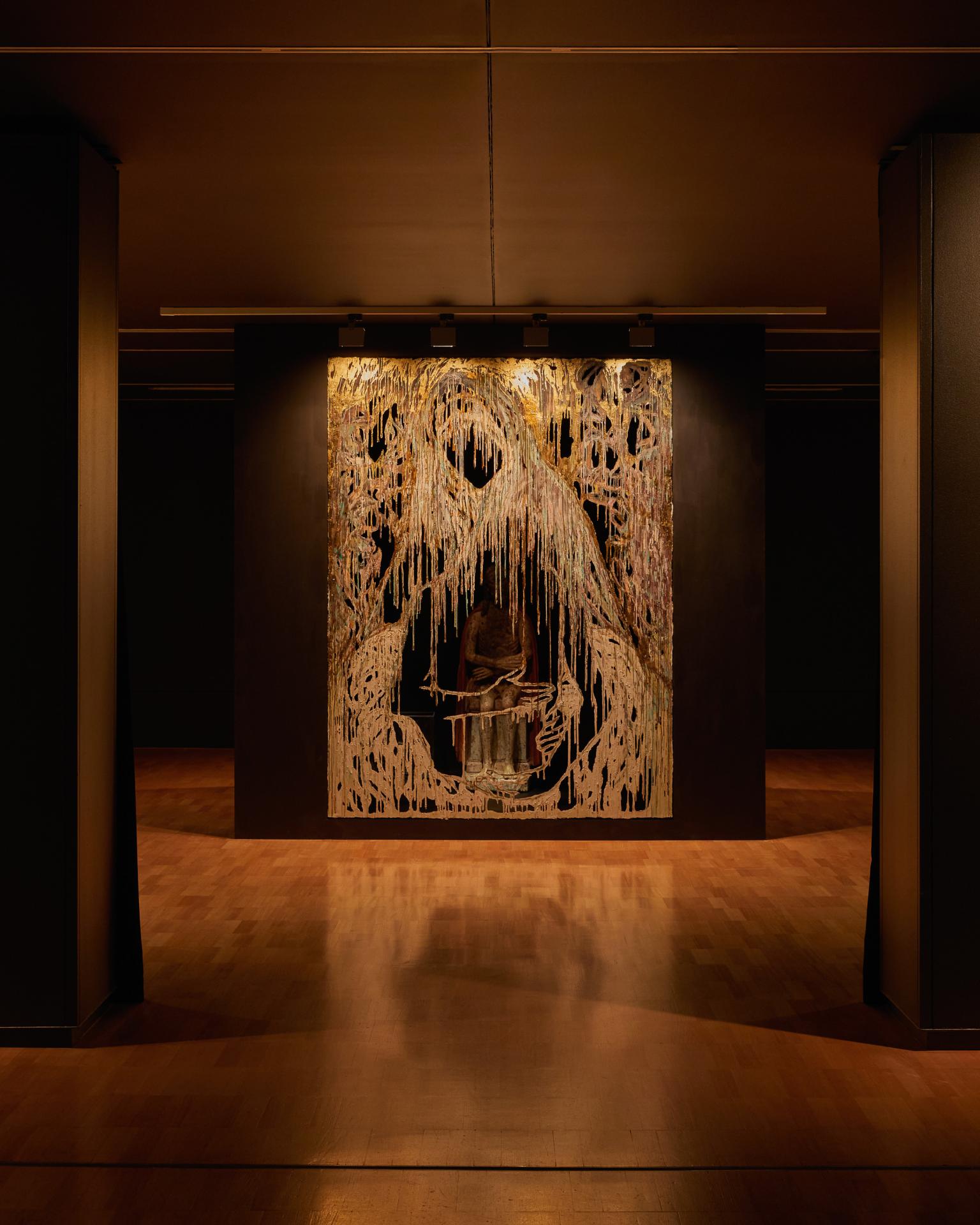 Al-Hadid responds to the NGV’s ancient and medieval collections through her preferred materials of polymer gypsum, fibreglass, paint and gold leaf. Her work creates new narratives among both secular and religious works selected from the NGV Collection across three permanent collection galleries. Through their journey, audiences’ perceptions are reoriented spatially and narratively, as the installation emphasises what is known and unknown, hidden and revealed between art, collections and their audiences.