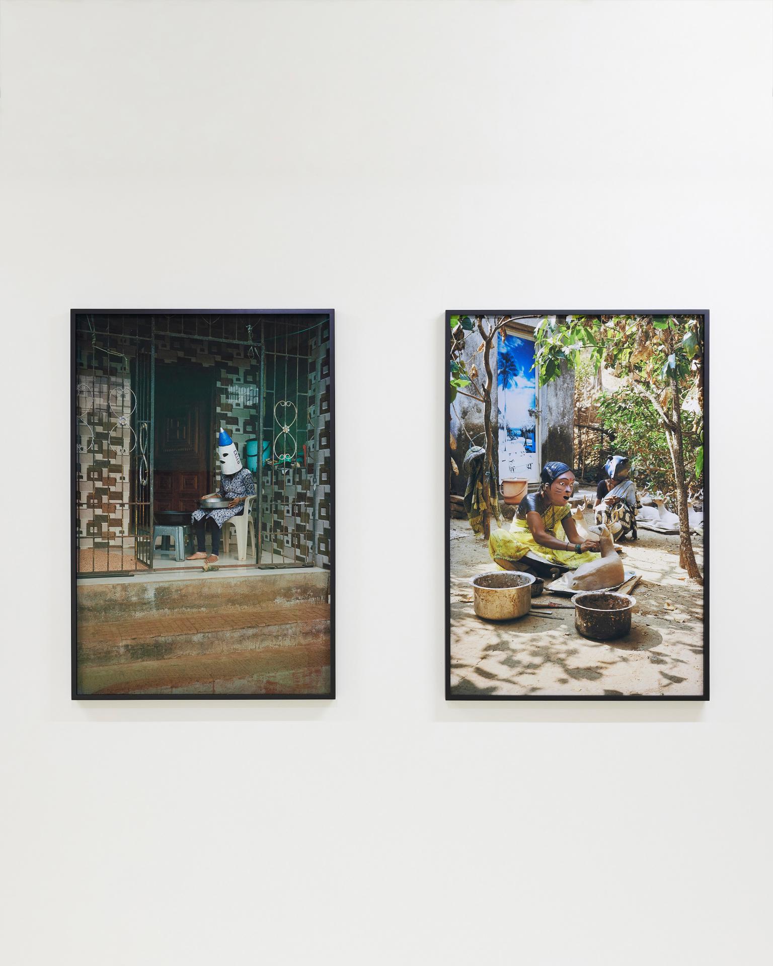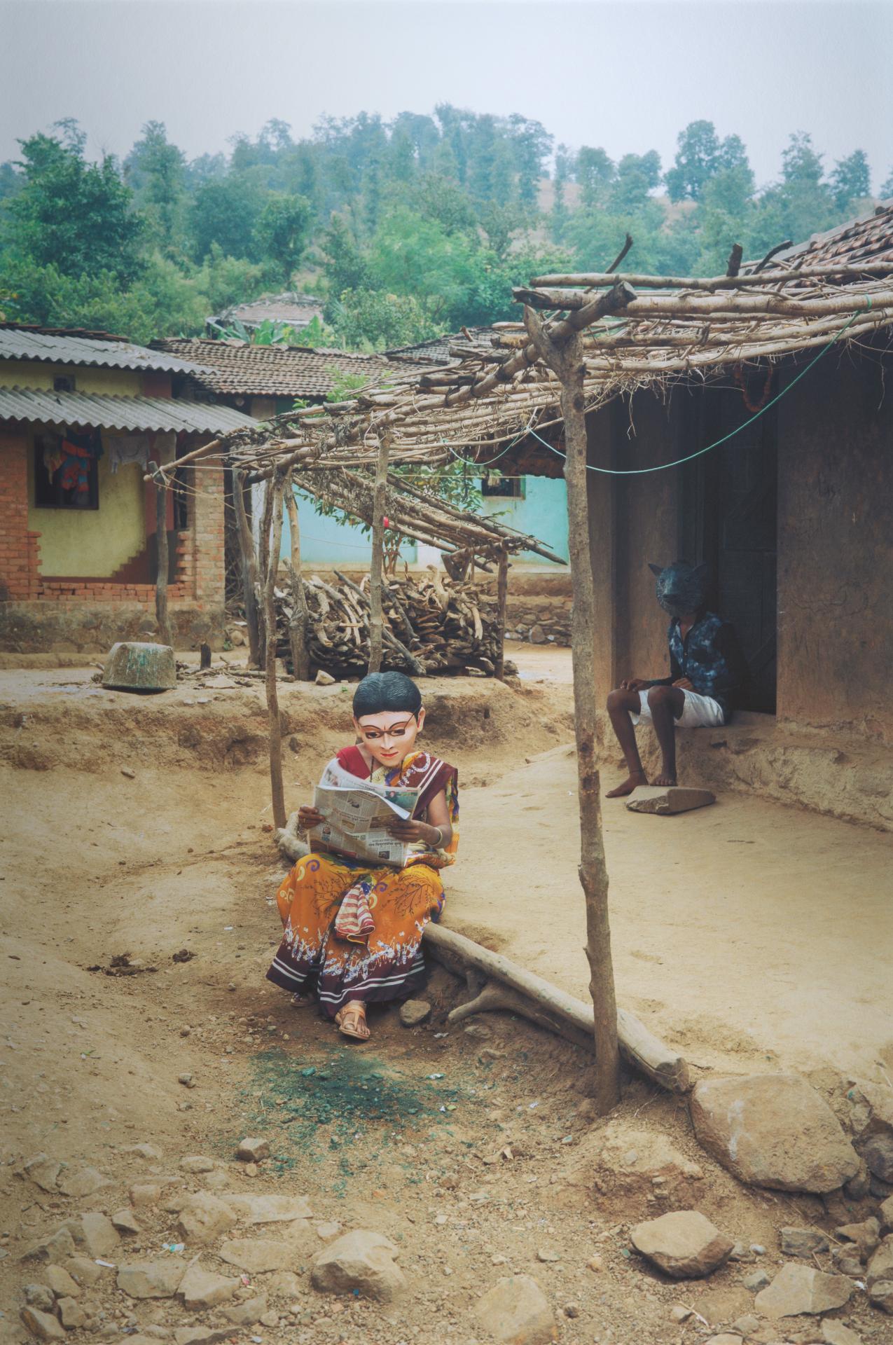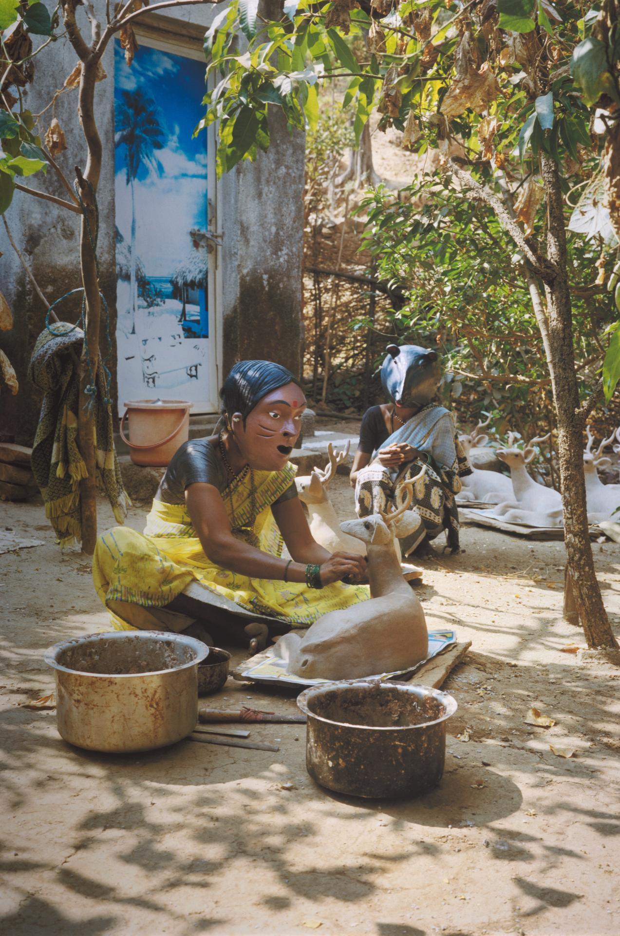 A central principle in Gauri Gill’s practice is collaborative partnerships as a way to blur the line between photographer and subject. Since 2014, she has worked with the renowned mask-makers of the Maharashtra region of India and her subjects to create a collaborative project. The people in Gill’s photographs wear masks, of their own design, as they engage in everyday village activities. Gill navigates the ethics of representation by inviting her subjects to participate in the creation of their own photographic likeness. The masks they don both allow them creative expression of a contemporary language of symbols, while obscuring their individual identities from exploitation.