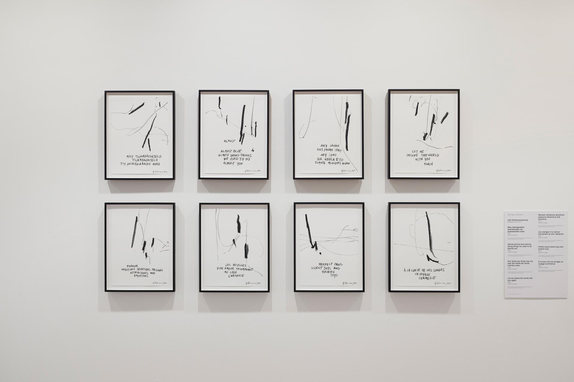 Joël Andrianomearisoa’s work is informed by his Madagascan heritage, a country of diverse cultural influences. This collection of works encompasses his multidisciplinary approach, including sculpture, textile and drawing. Giving form to abstract narrations, he depicts texts that are often ambiguous, and are considered an ongoing series of exercises. He seeks to explore the aesthetic and architectural form of emotions and feelings, that, while they are universally felt, do not have a name.
