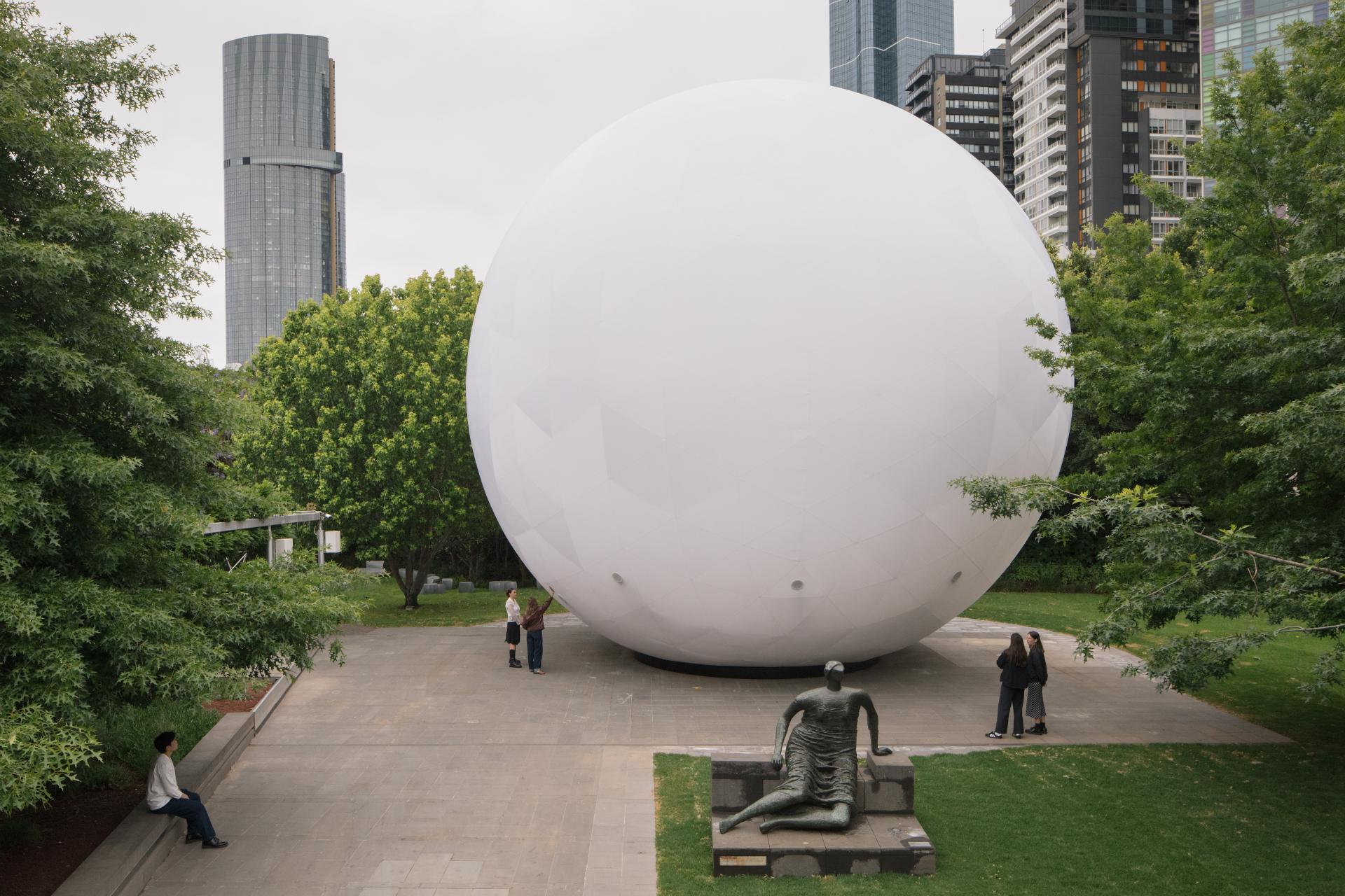 Utilising air as a building material, the commission will morph and change throughout the day as it expands and then releases air in a natural rhythm. A poignant study of air and time, the fully inflated spherical structure will stand over 14 metres tall, evoking a sense of uplifting optimism. Throughout the day, the structure will ‘exhale’, releasing gusts of air and forming an array of cloud-like configurations, before filling to capacity once more. The structure invites audiences to consider humanity’s relationship to this essential and yet invisible element. By making air seen, heard and felt, the work highlights our connection to and dependency on air – a finite resource whose quality is becoming increasingly affected.
