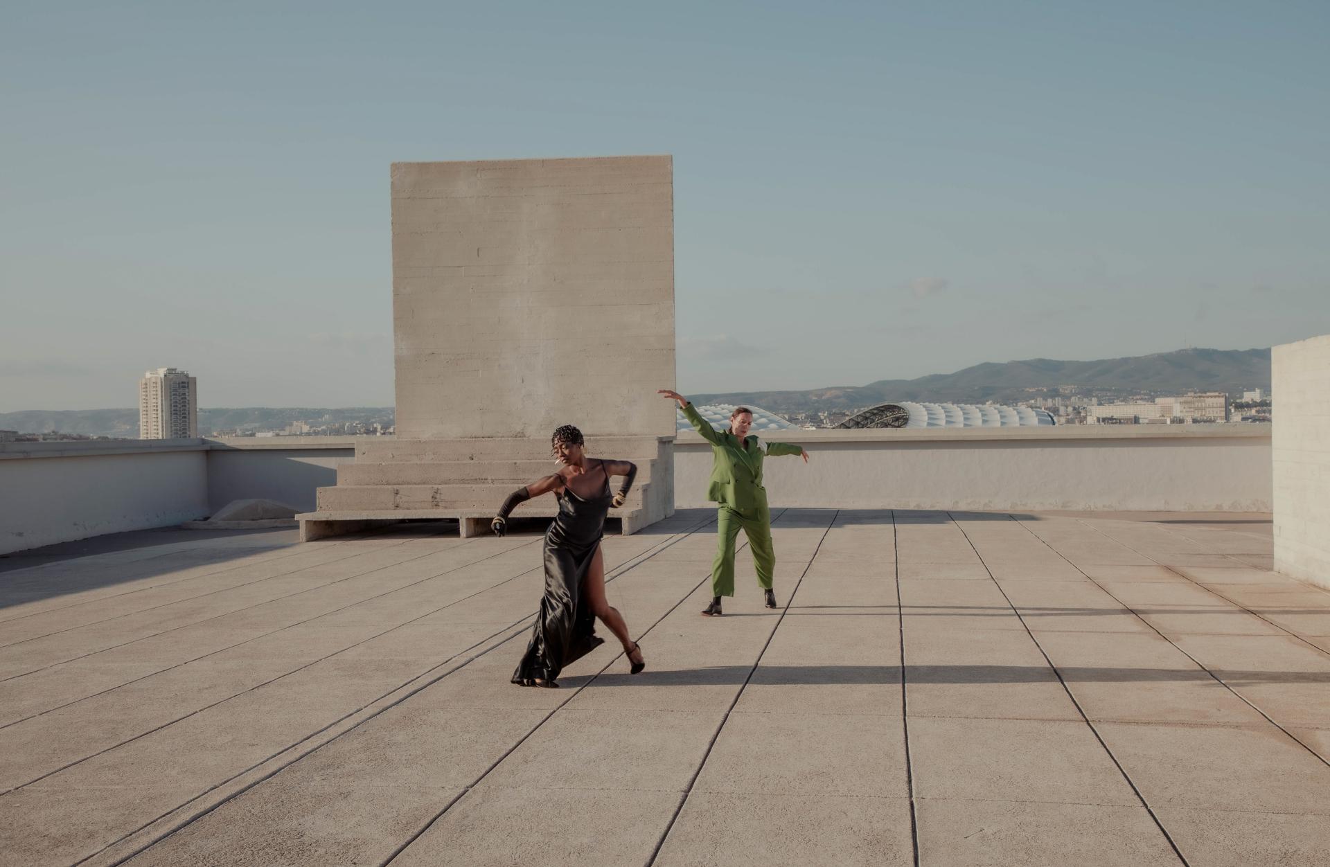 Gerard & Kelly’s Bright hours explores and speculates on the relationship between the famed Swiss-French architect Charles-Edouard Jeanneret (1887–1965), known as Le Corbusier, and American dancer Josephine Baker (1906–75). It is the latest work in their series Modern Living, 2016, which places bodies, relationships and architecture into dialogue. In Bright hours Baker, depicted by St Louis– born dancer Emara Neymour-Jackson and Le Corbusier played by French actress Jeanne Balibar, appear in relation to the architect’s iconic modernist apartment block La Cité Radieuse in Marseille. With a soundtrack composed and performed by American singer Moses Sumney, Bright hours uses choreography to explore gender, race, sexuality and modernism’s real and imagined legacy.