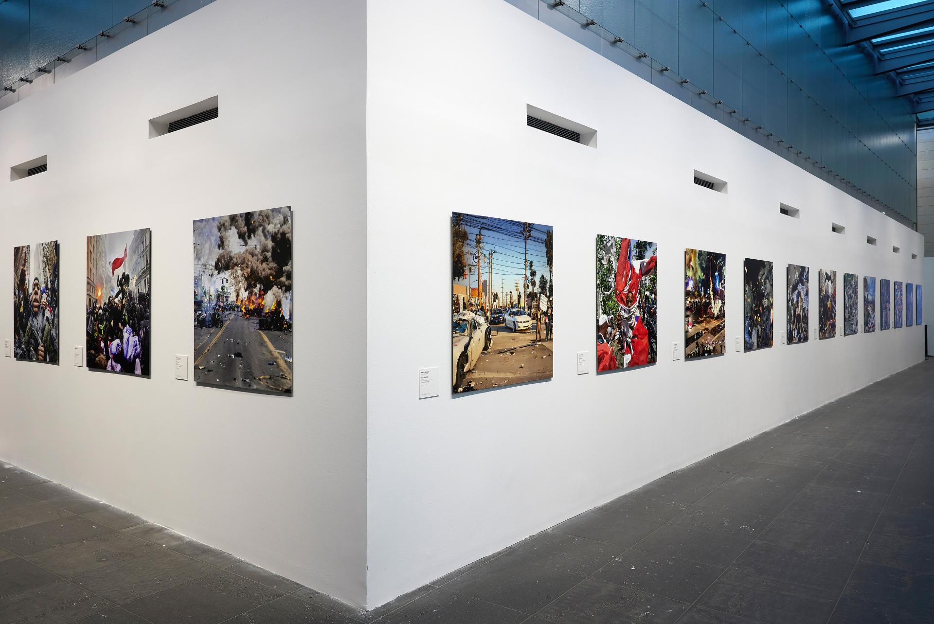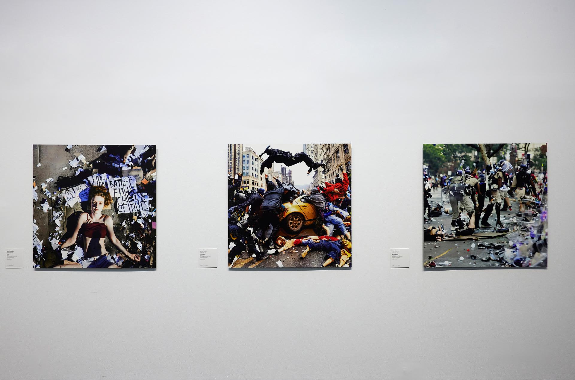 Abosch’s interest in photojournalism is a starting point for his exploration of ‘synthetic photography’, specifically these deepfakes of scenes depicting civil unrest across the world. It is unclear at first glance if these are scenes of past riots and protests or if they are breaking news. For Abosch, they can be seen as future news.