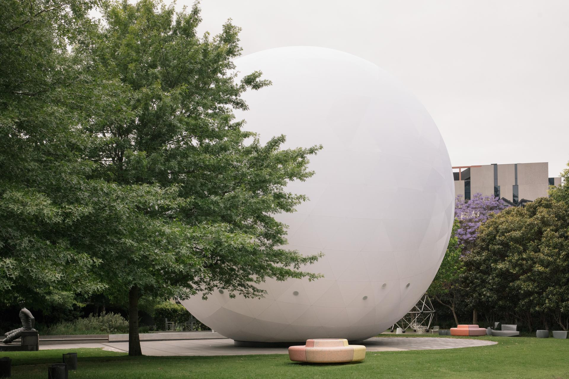 Utilising air as a building material, the commission will morph and change throughout the day as it expands and then releases air in a natural rhythm. A poignant study of air and time, the fully inflated spherical structure will stand over 14 metres tall, evoking a sense of uplifting optimism. Throughout the day, the structure will ‘exhale’, releasing gusts of air and forming an array of cloud-like configurations, before filling to capacity once more. The structure invites audiences to consider humanity’s relationship to this essential and yet invisible element. By making air seen, heard and felt, the work highlights our connection to and dependency on air – a finite resource whose quality is becoming increasingly affected.