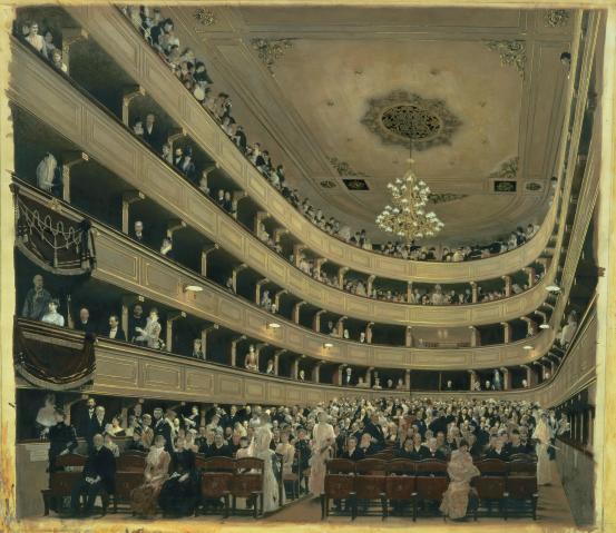 Under Imperial patronage, Gustav Klimt continued to execute important public commissions and in 1888, aged 26, won the Emperor's prize for his painting of the Old Burgtheater.