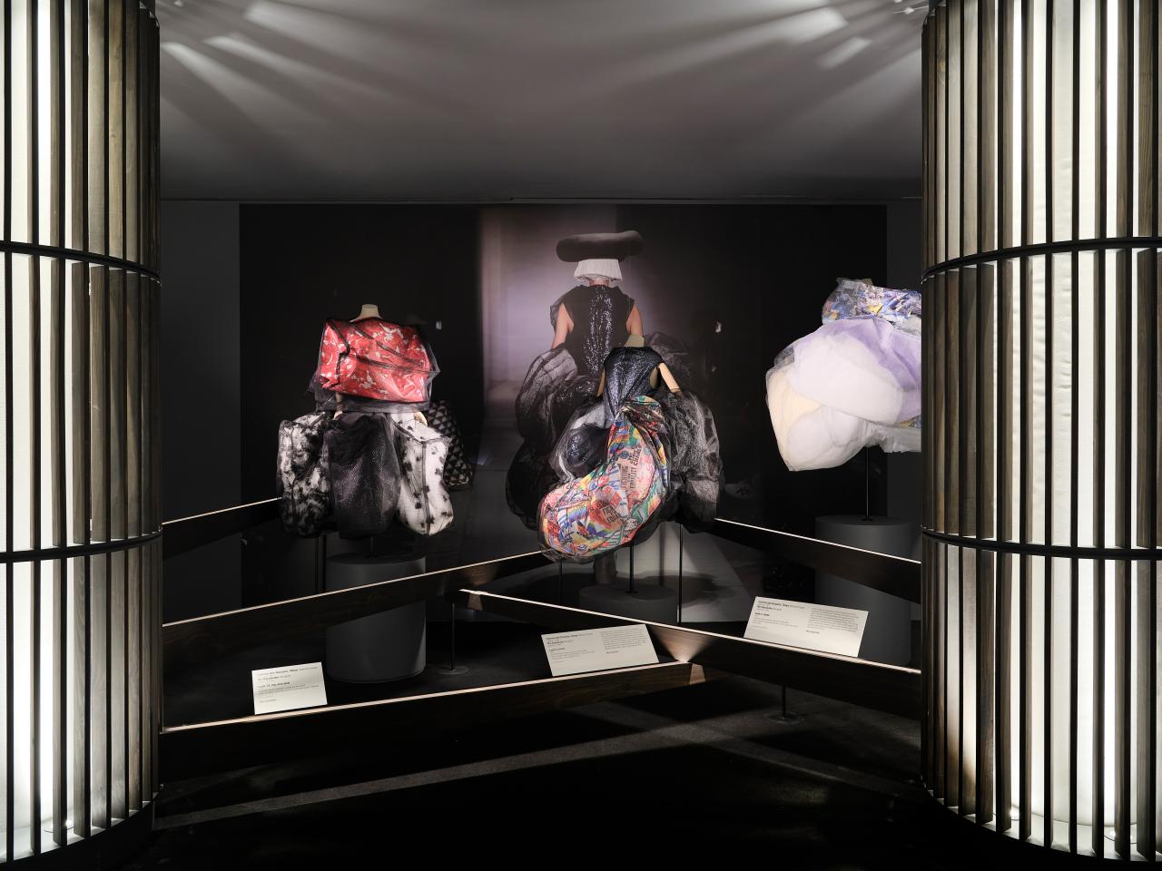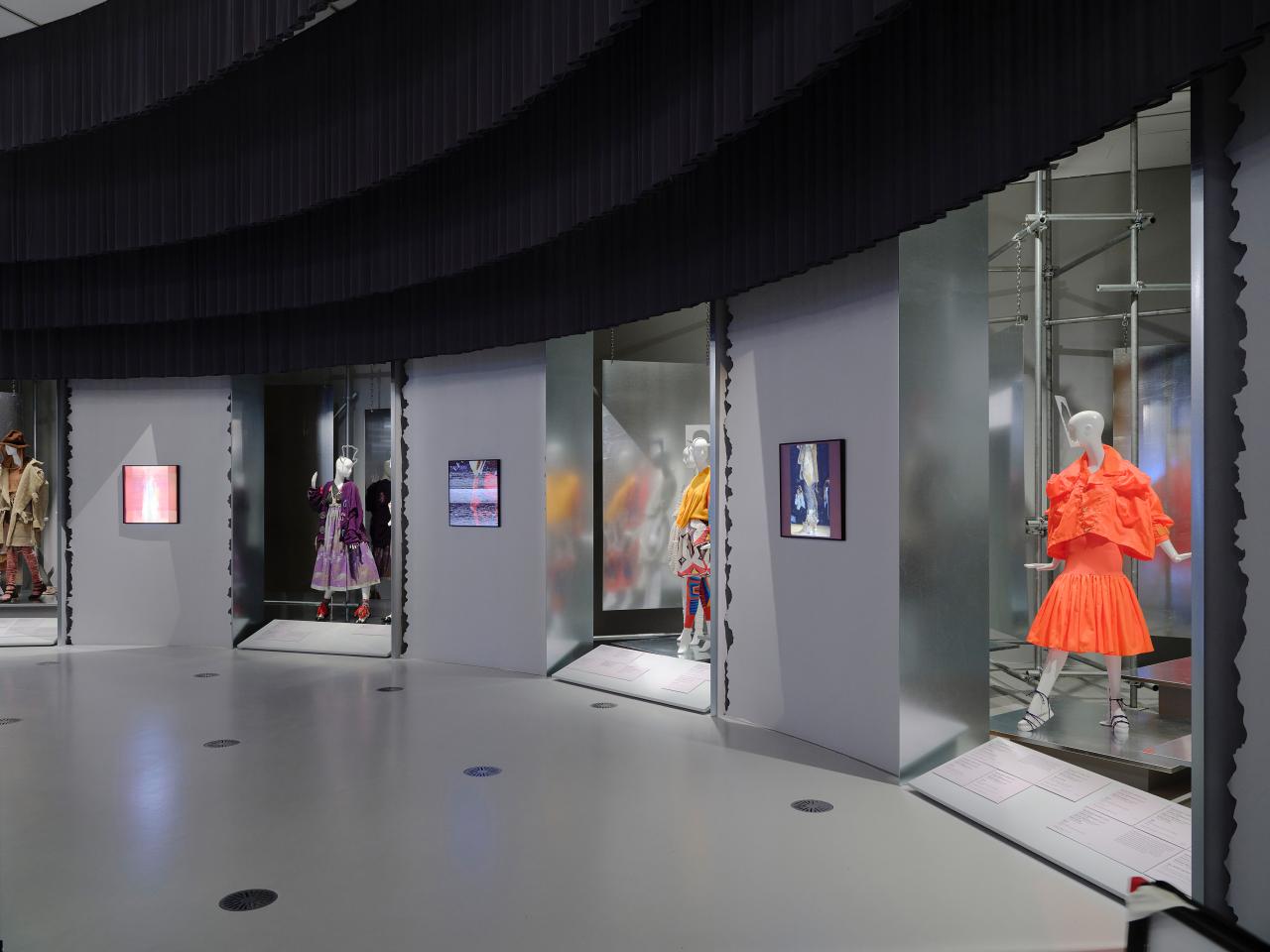 As you enter the NGV through the Waterwall entrance on St Kilda Road, the Westwood | Kawakubo exhibition is on the left-hand side or south end of the building.